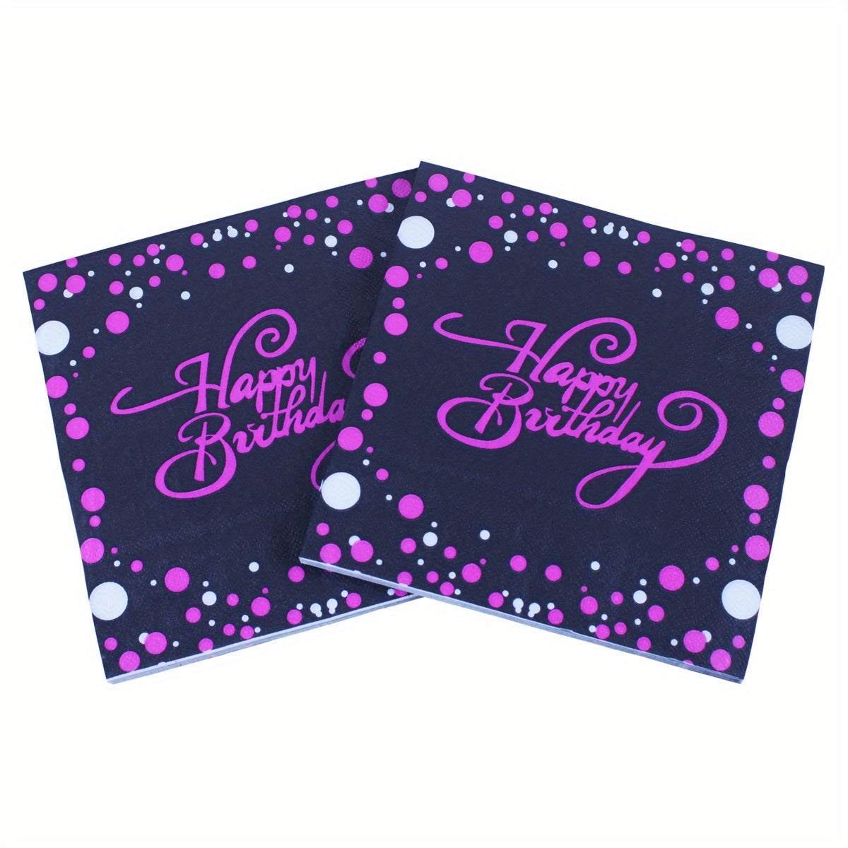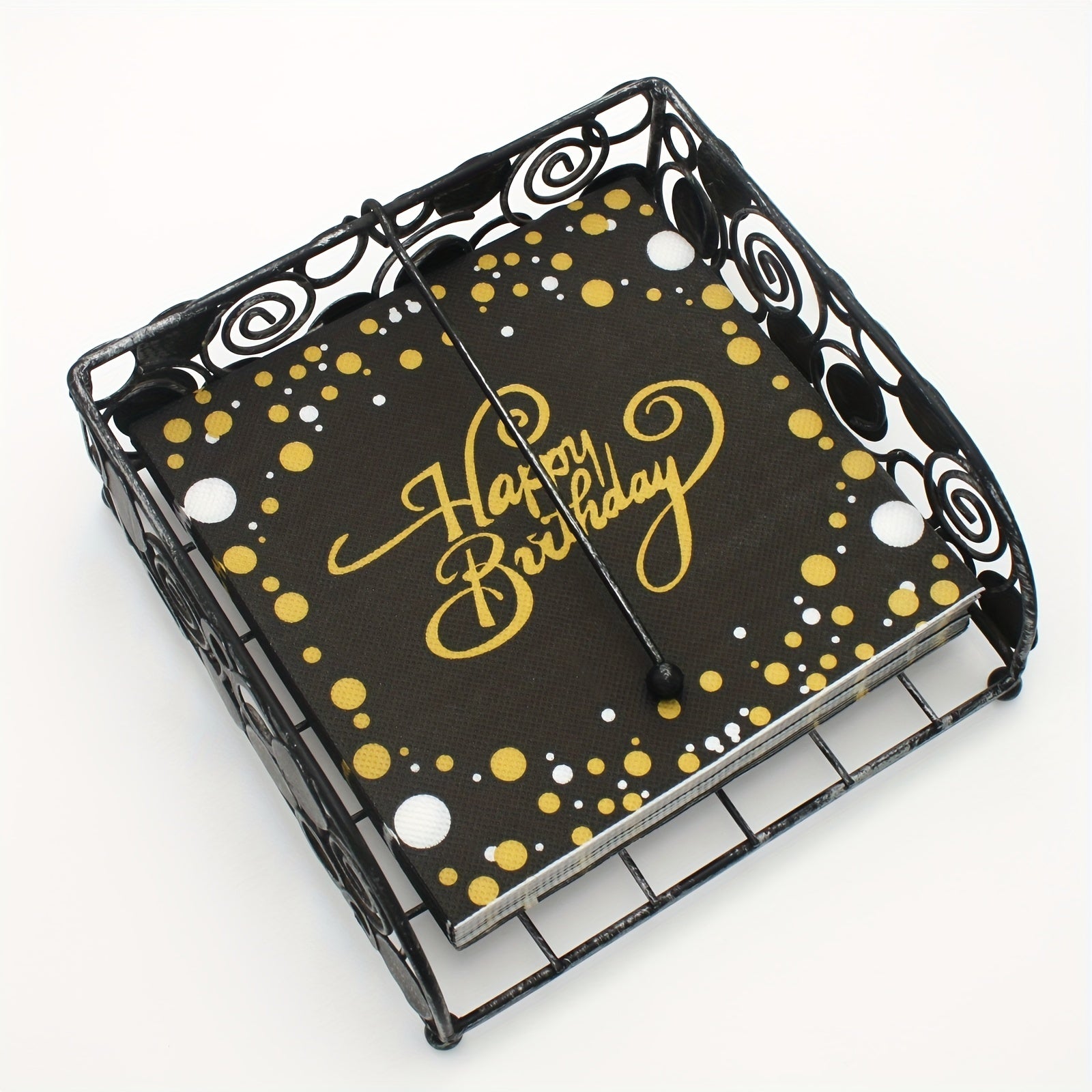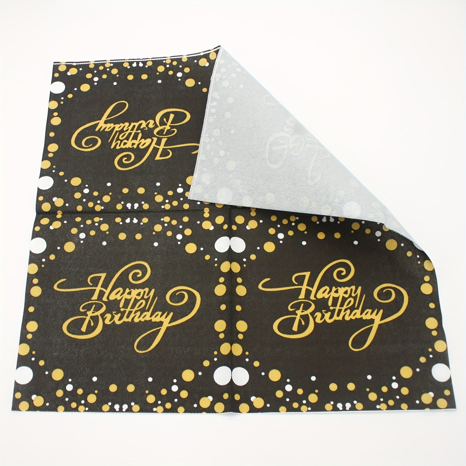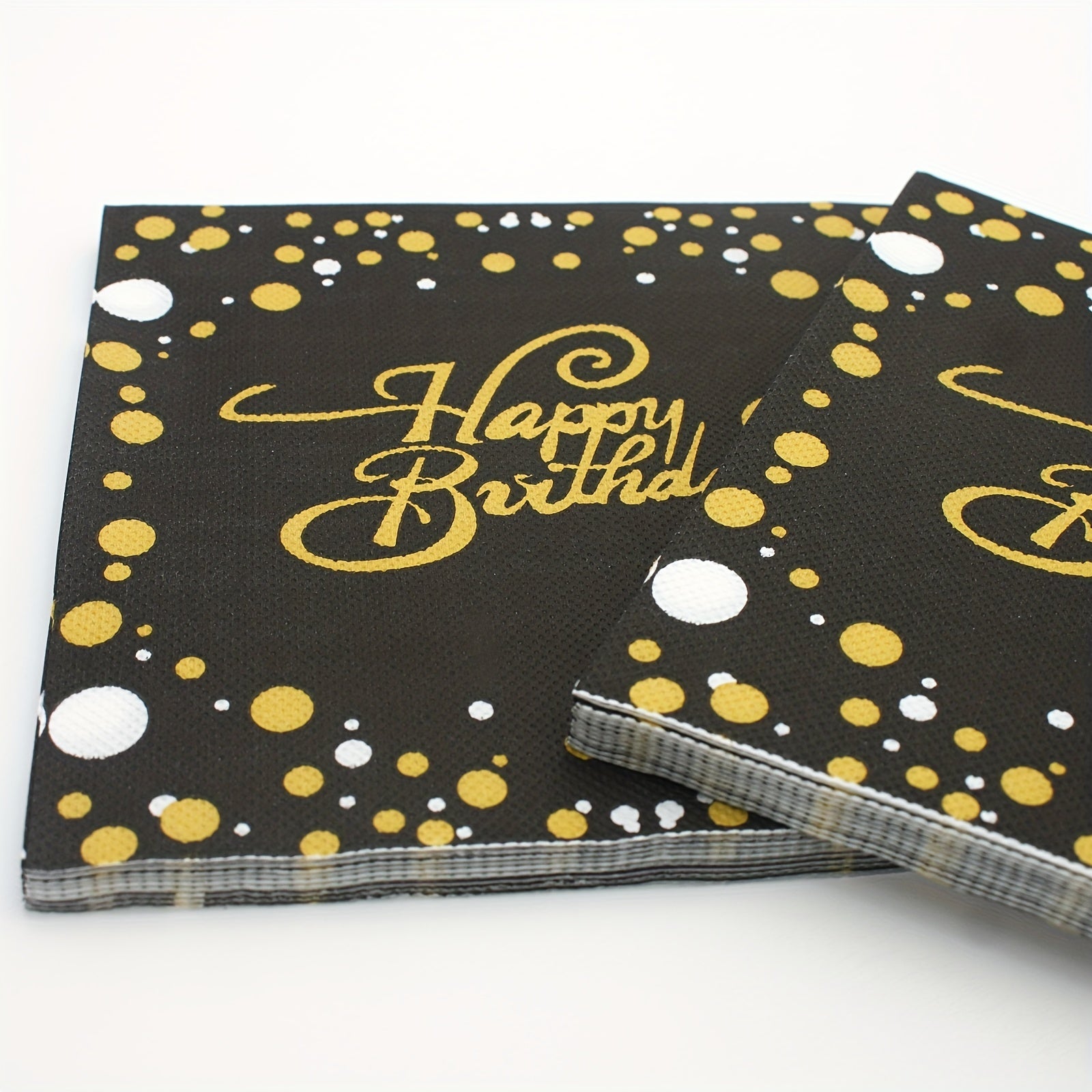 20 черных салфеток (33,02 см x 33,02 см) с золотым узором "С Днем Рождения", идеально подходящих для мероприятий, таких как свадьбы, юбилеи и дни рождения.