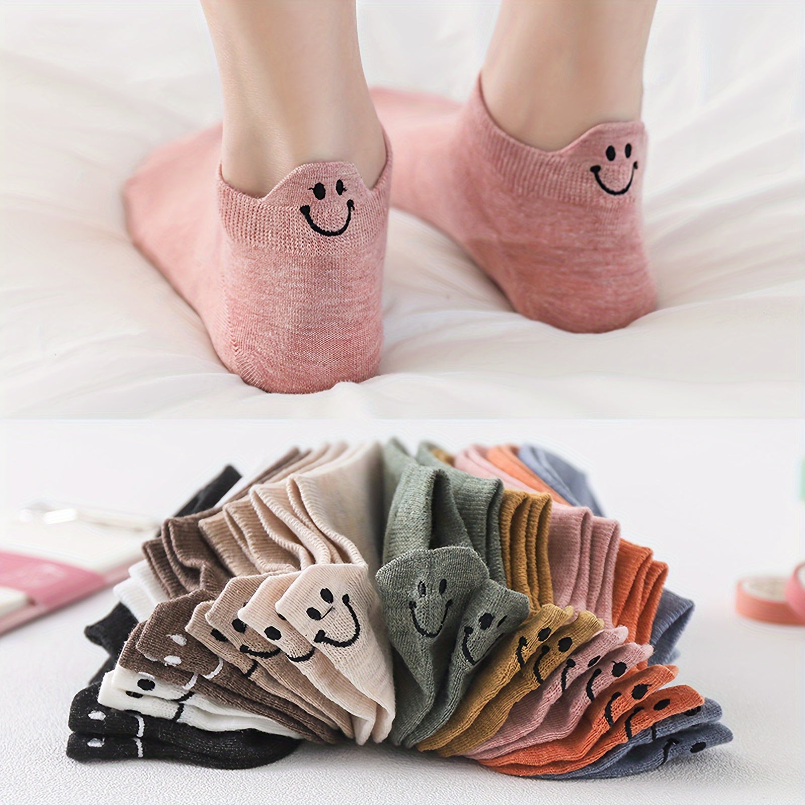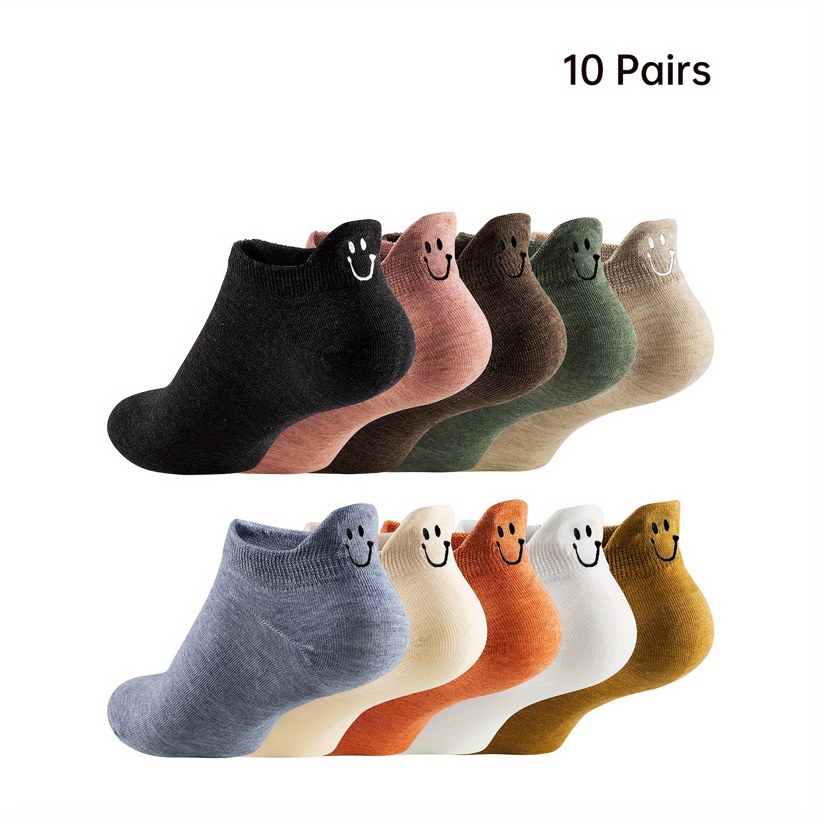 10 пар женских носков до щиколотки дышащих, комфортных, с вышитым улыбающимся лицом, короткие носки