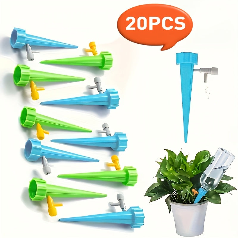 20 капельниц для полива растений с регулируемым контролем потока, самополивные шипы и универсальный адаптер для бутылок