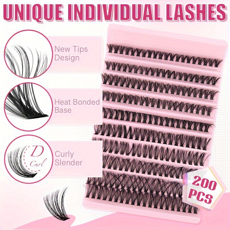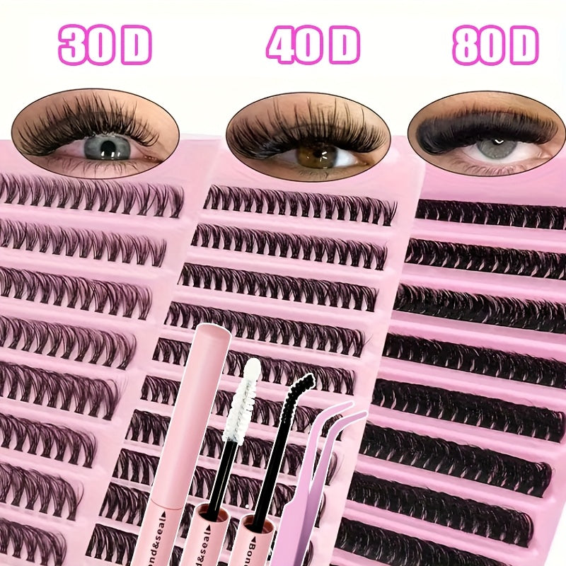 Набор для самостоятельного наращивания ресниц на 200 штук с разными длинами и стилями для естественного, густого и кошачьего взгляда