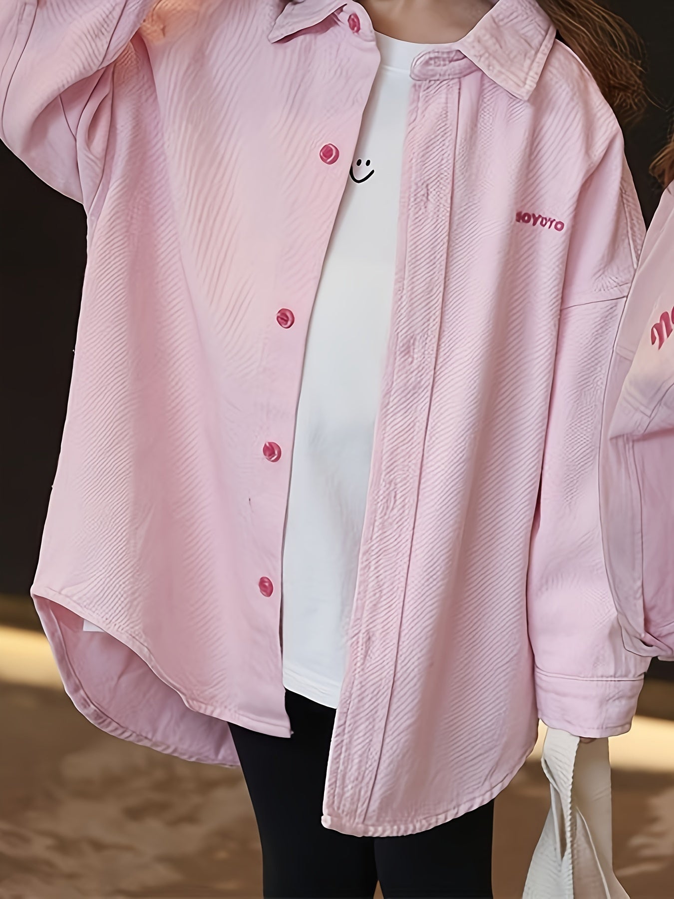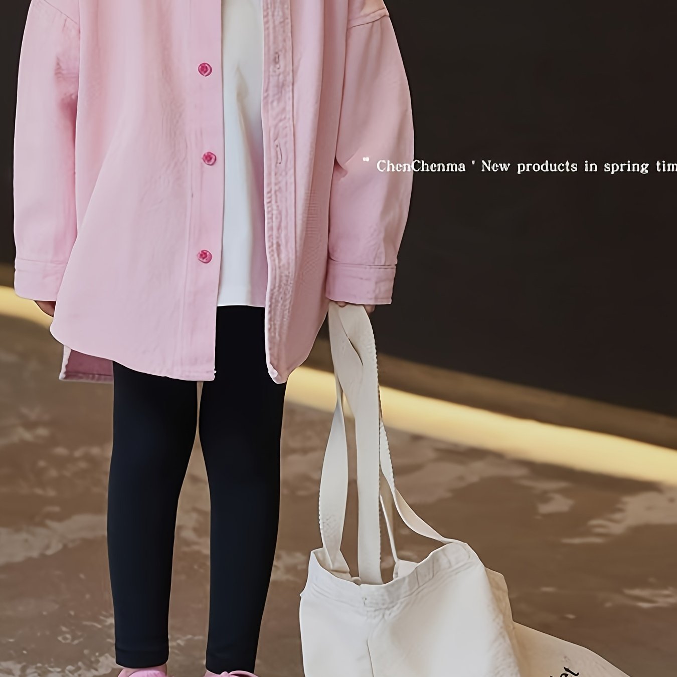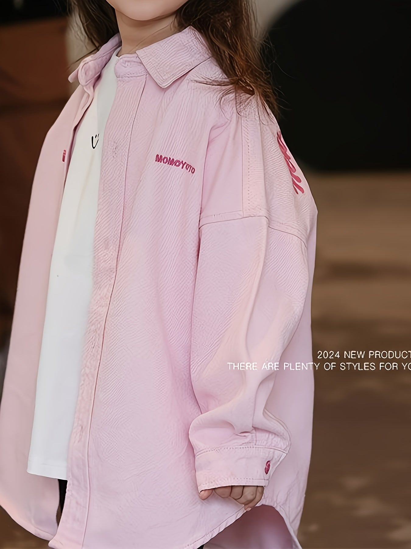Девочки Розовая рубашка с длинным рукавом из хлопка, повседневная, весна, осень для детей