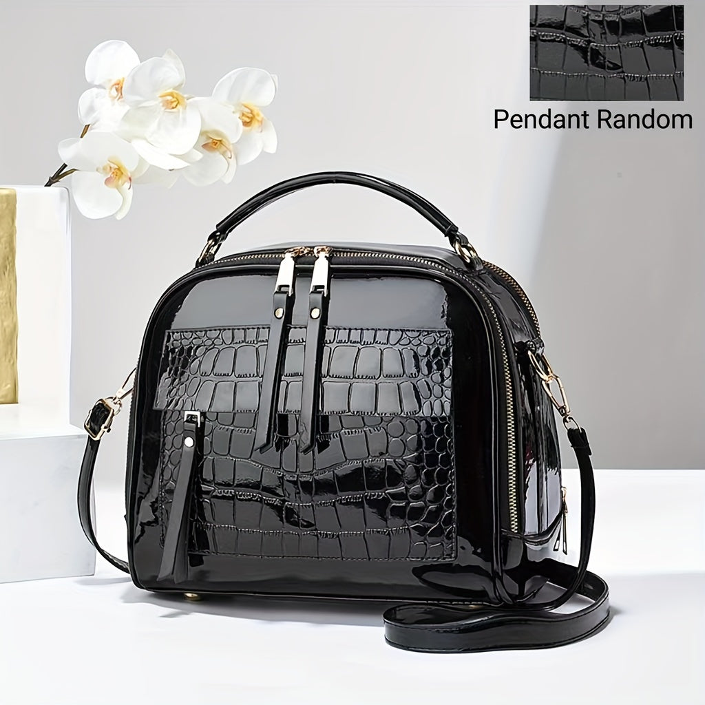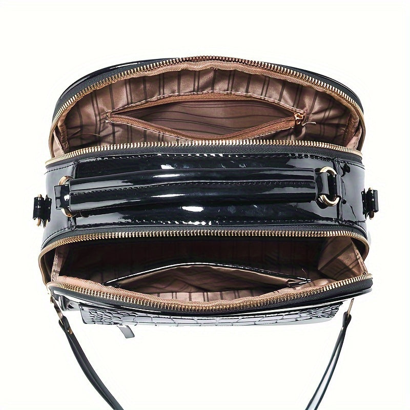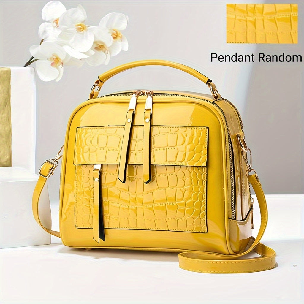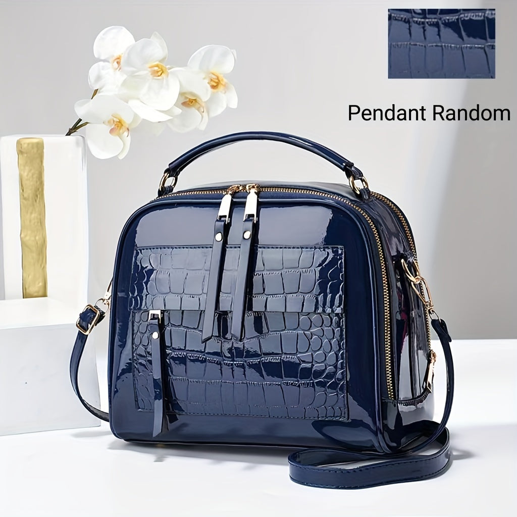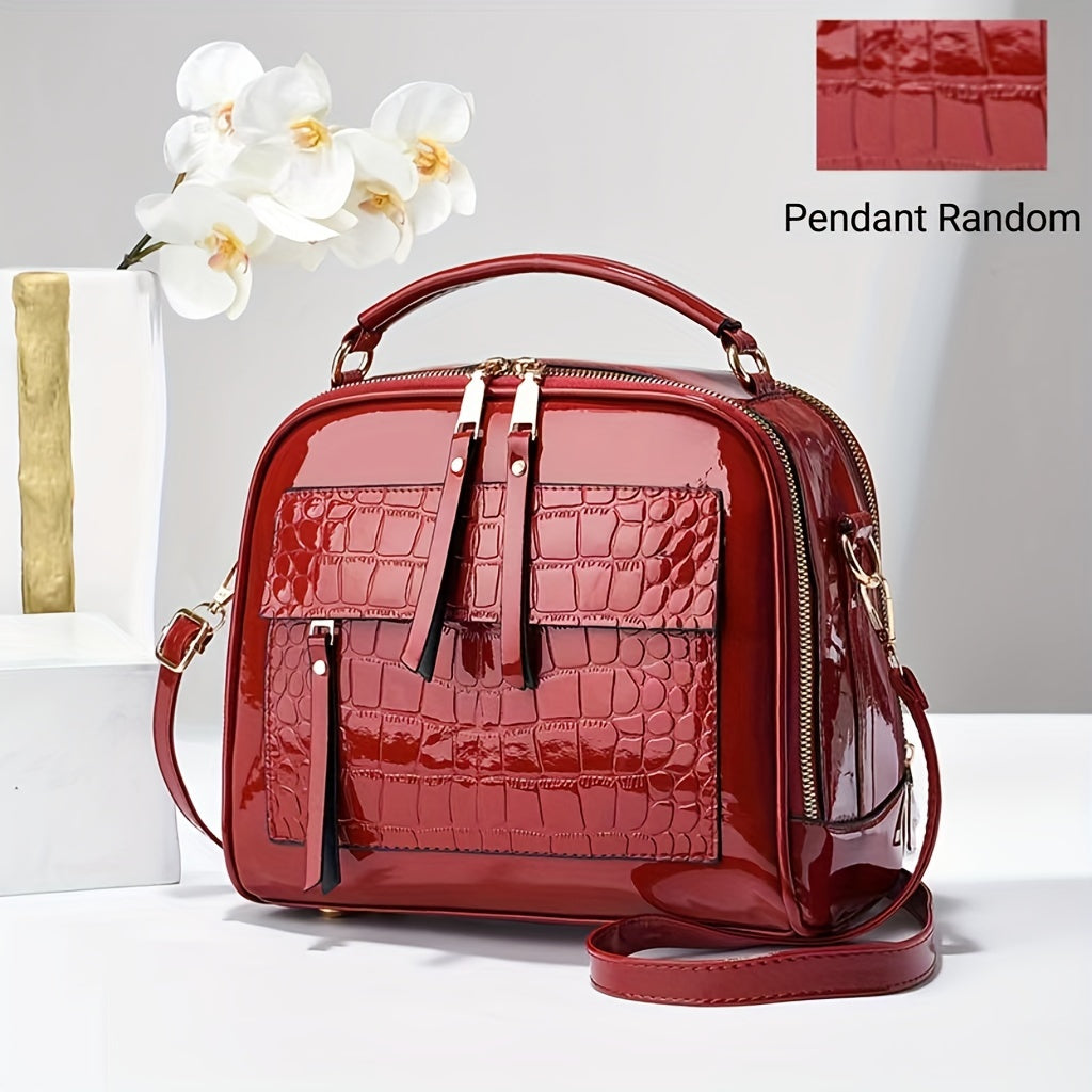 Многоуровневая глянцевая сумка из PU с застежкой-молнией в красном, черном, желтом, синем и фиолетовом цветах 2024