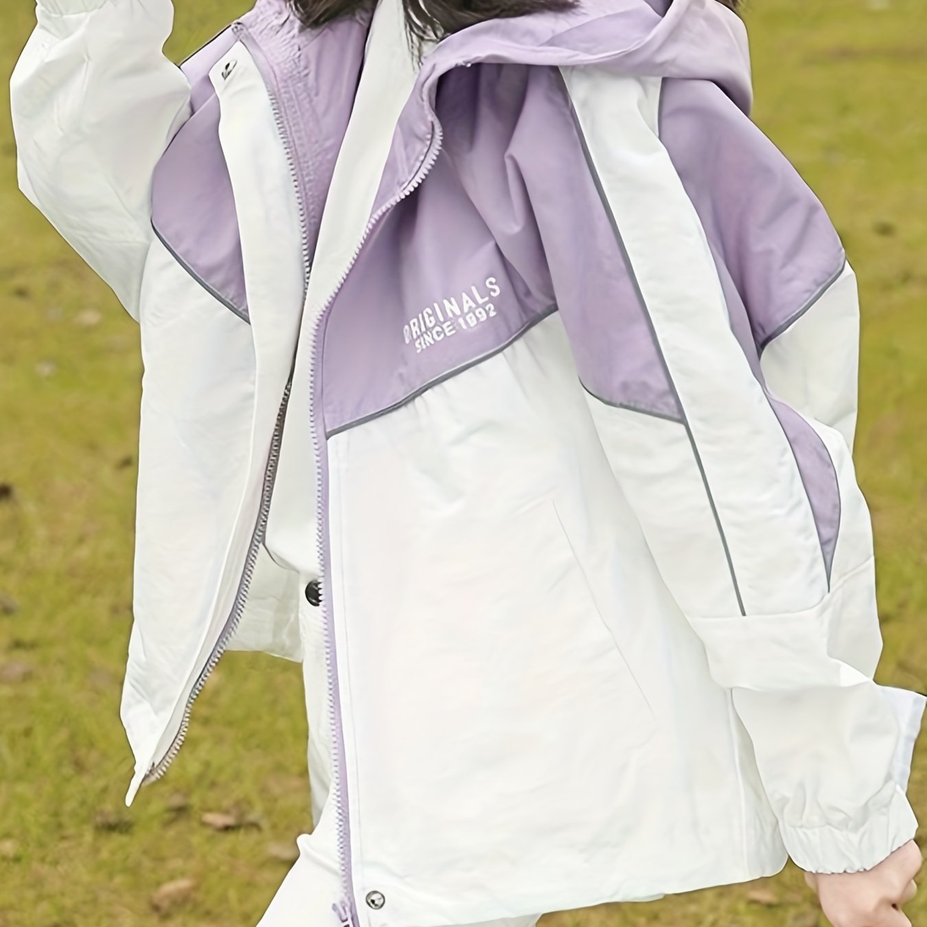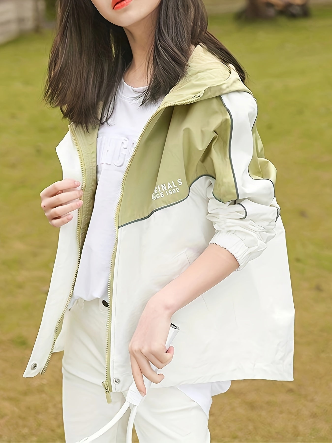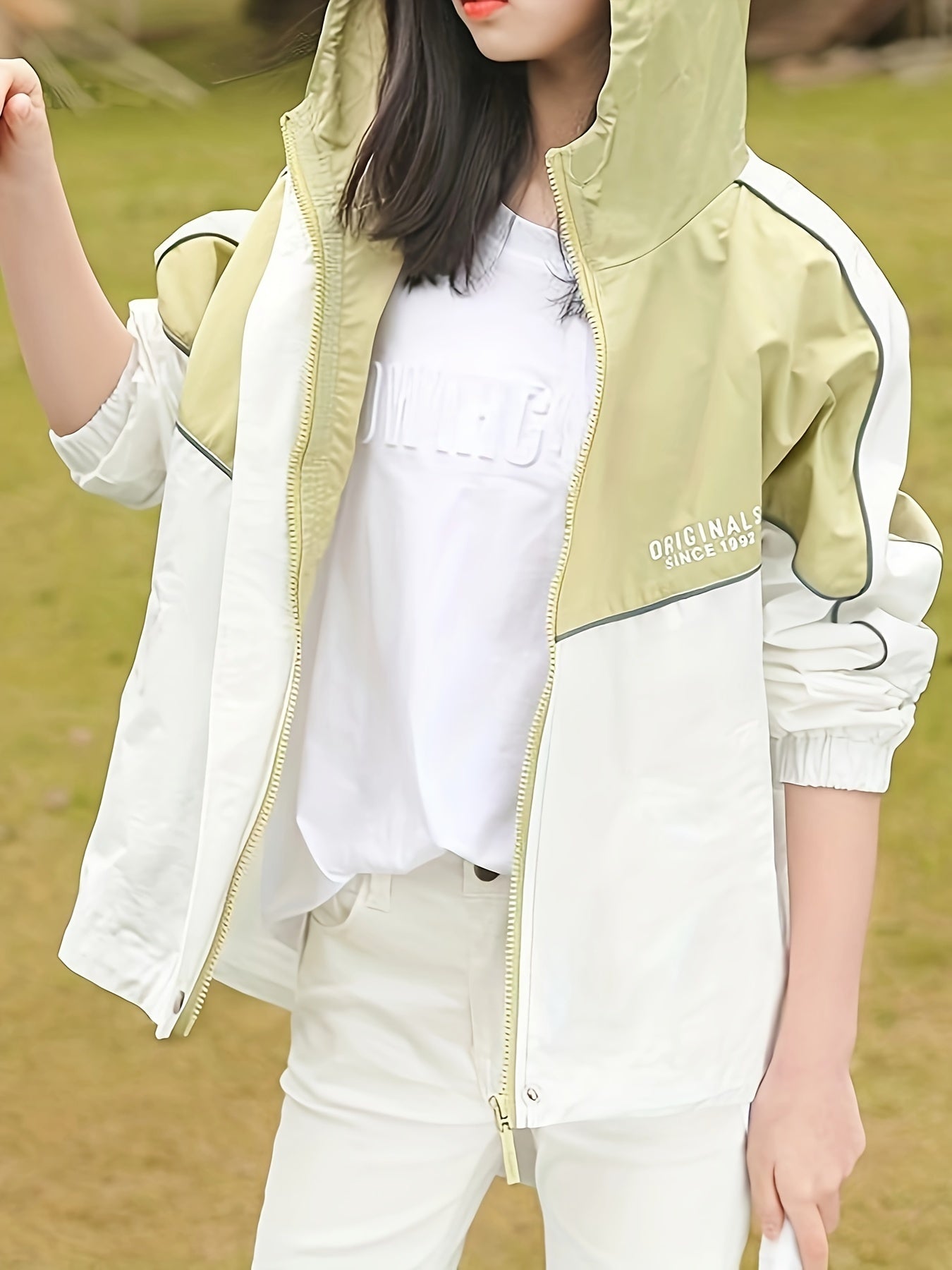 Девочковая ветровка на весну и осень 2024 с капюшоном, с буквенным принтом, из полиэстера, повседневная, свободного кроя