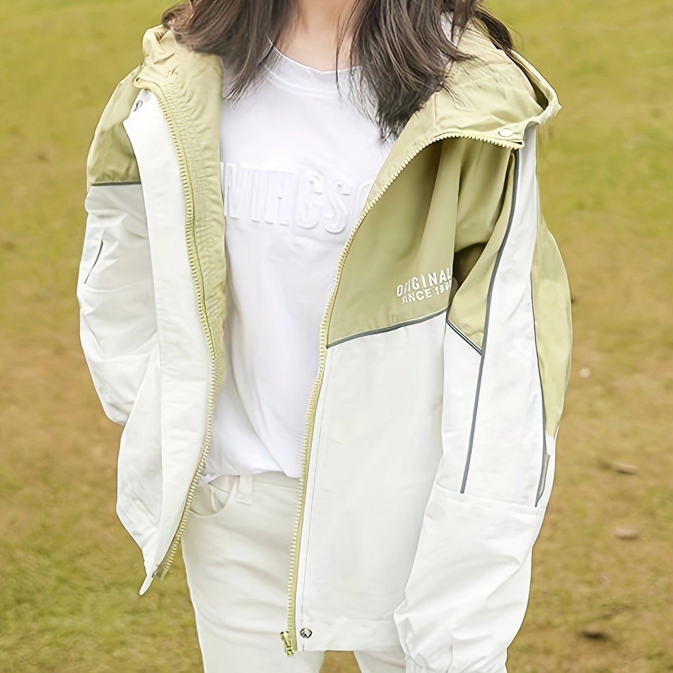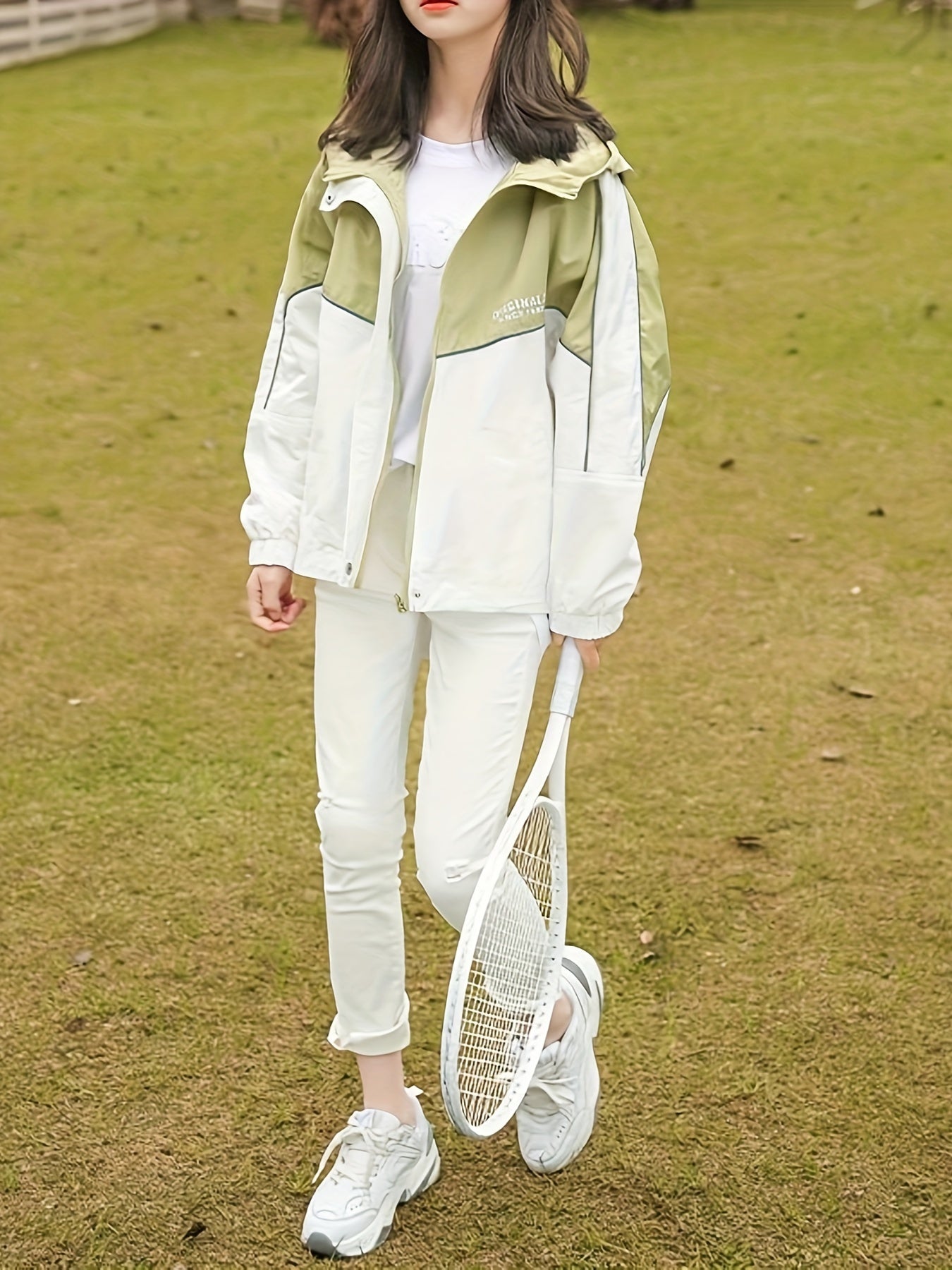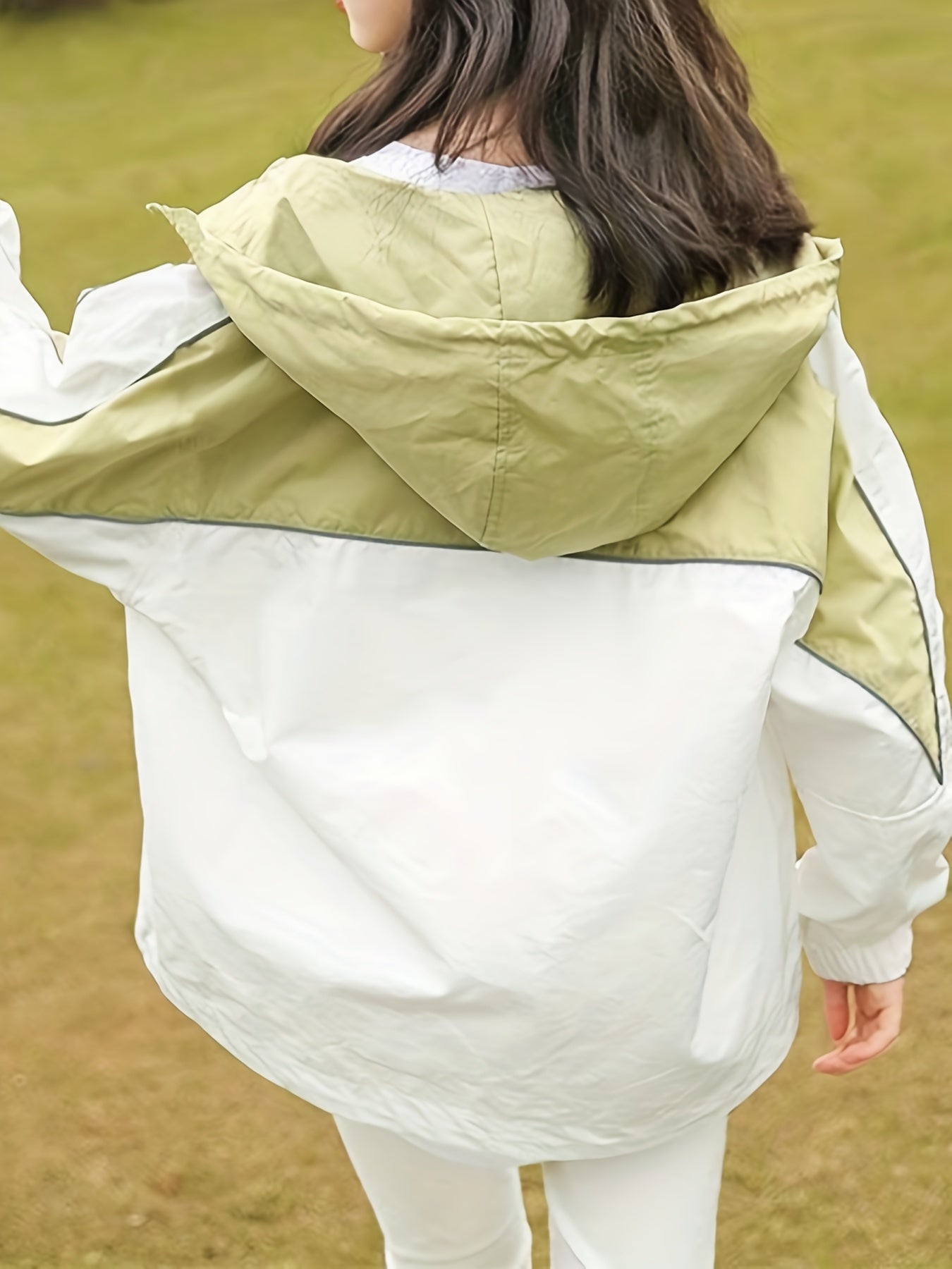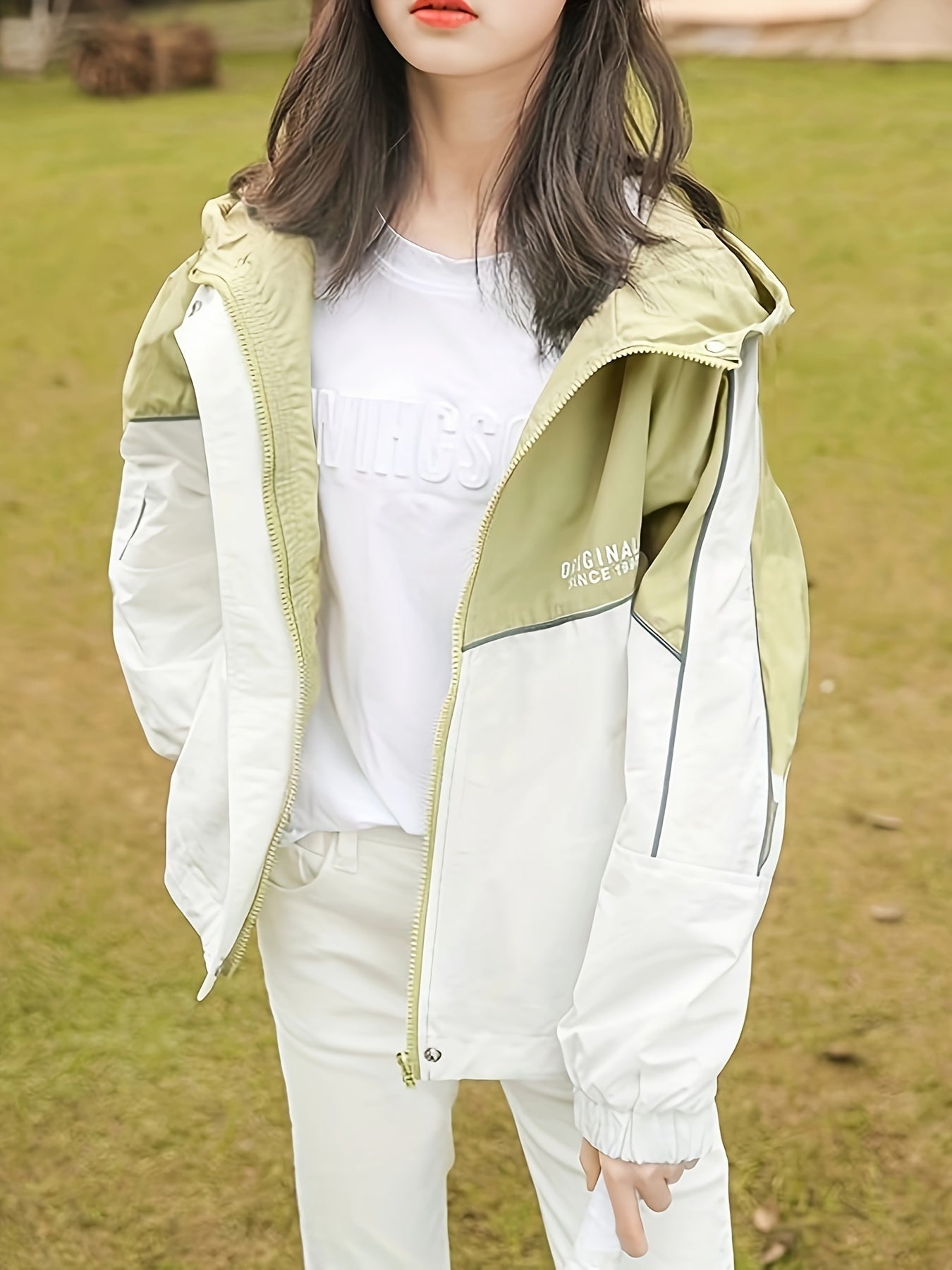 Девочковая ветровка на весну и осень 2024 с капюшоном, с буквенным принтом, из полиэстера, повседневная, свободного кроя