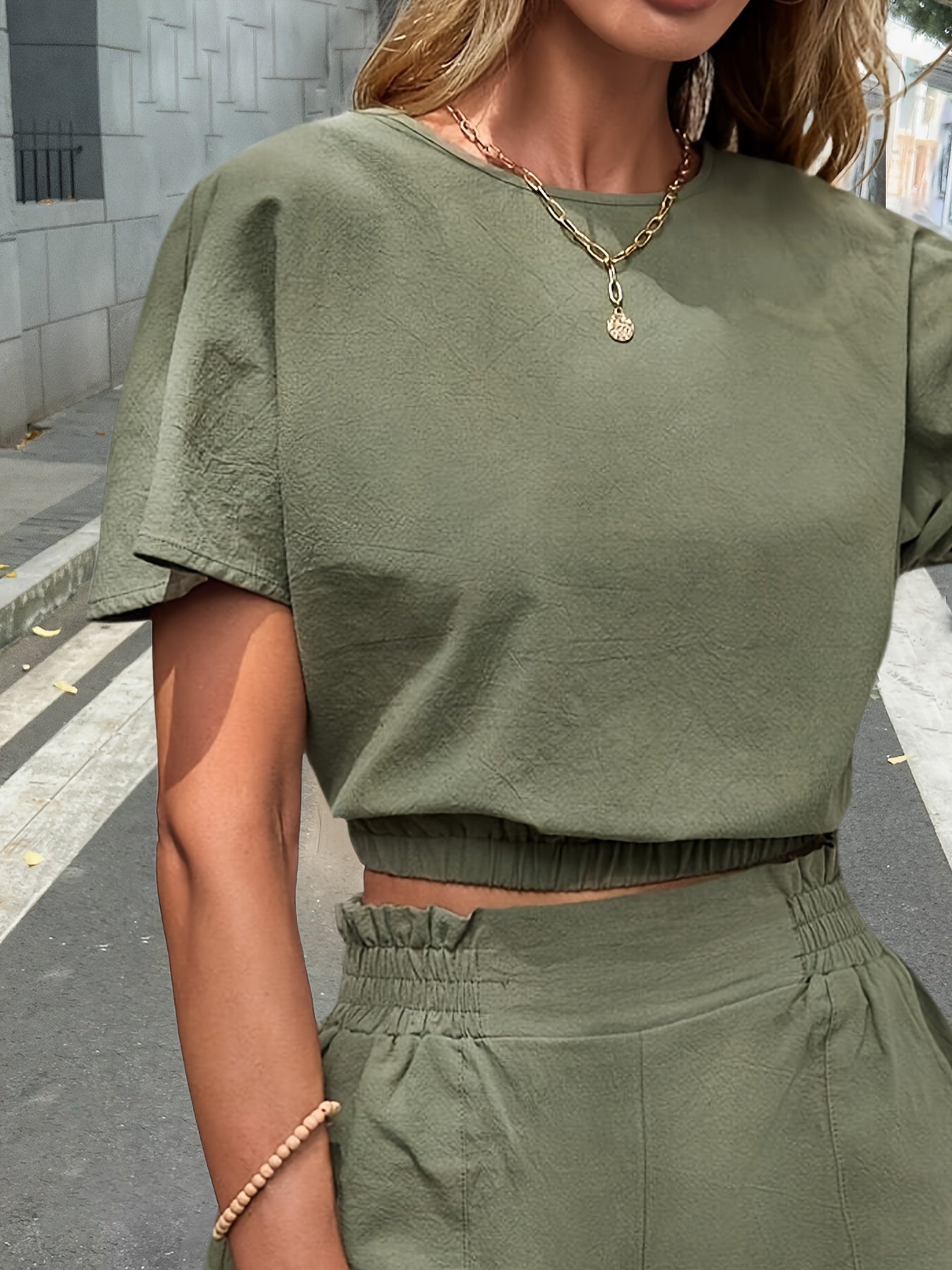 Кэжуальный комплект из топа и шорт для женщин на весну-лето 2024