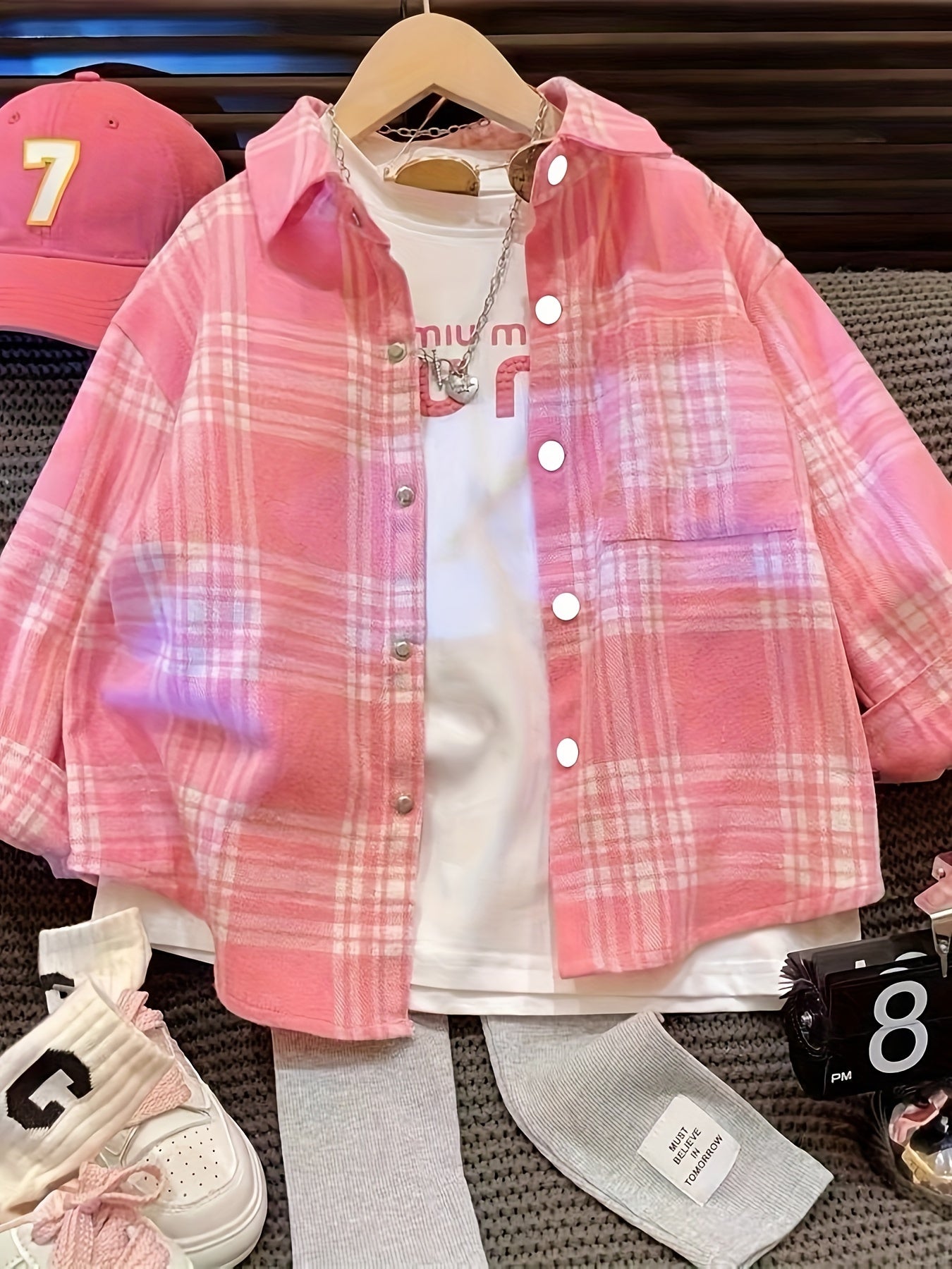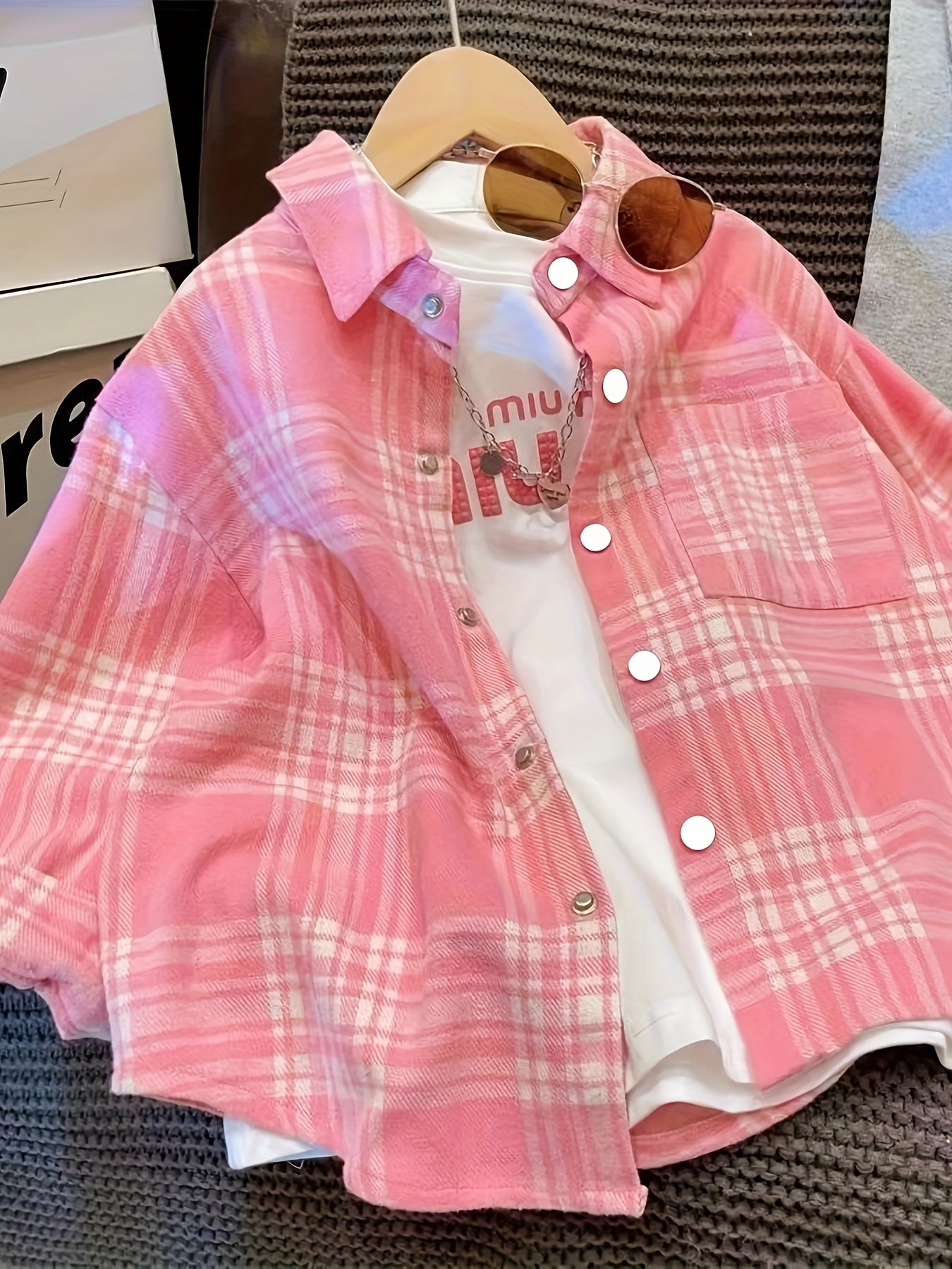 Девочки в клетчатом костюме рубашки 2024 с длинным рукавом, повседневная весна-осень