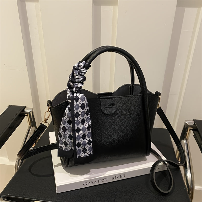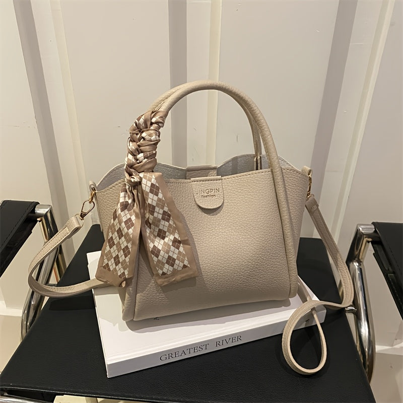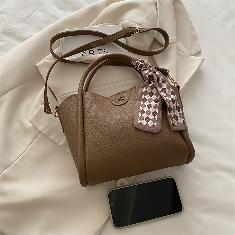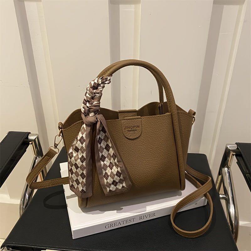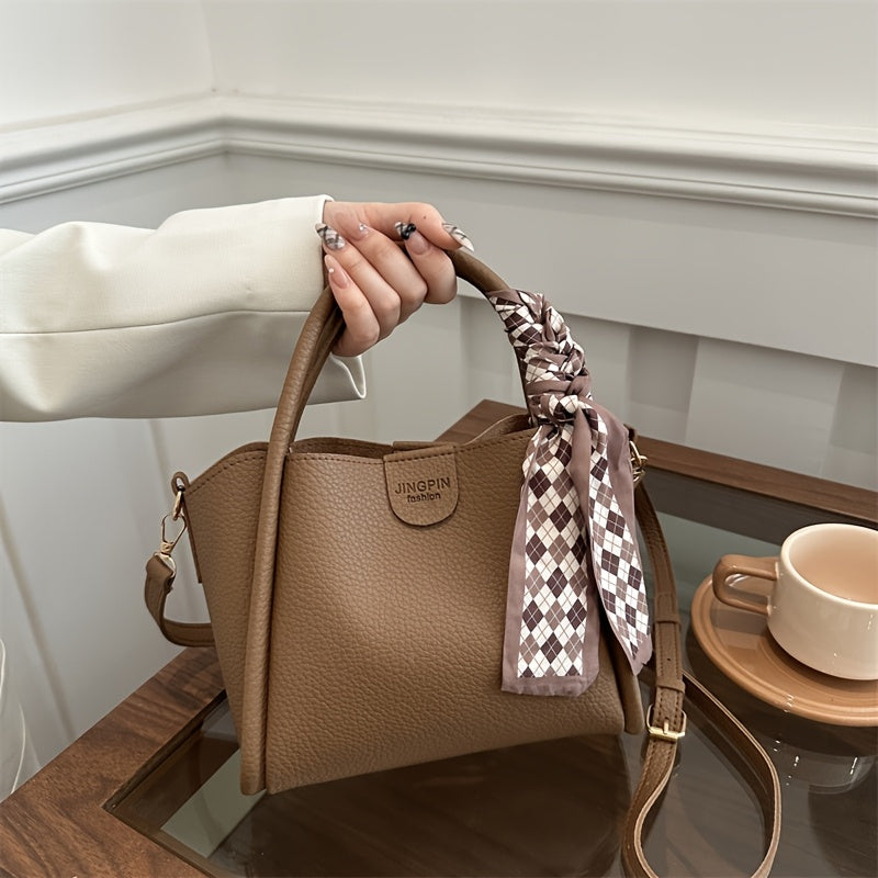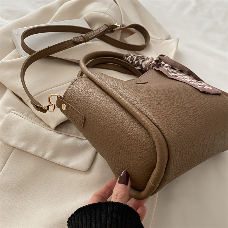 2024 Корейский стиль водонепроницаемый PU плечевая сумка-ведро с регулируемым ремнем в хаки, темно-коричневом, черном