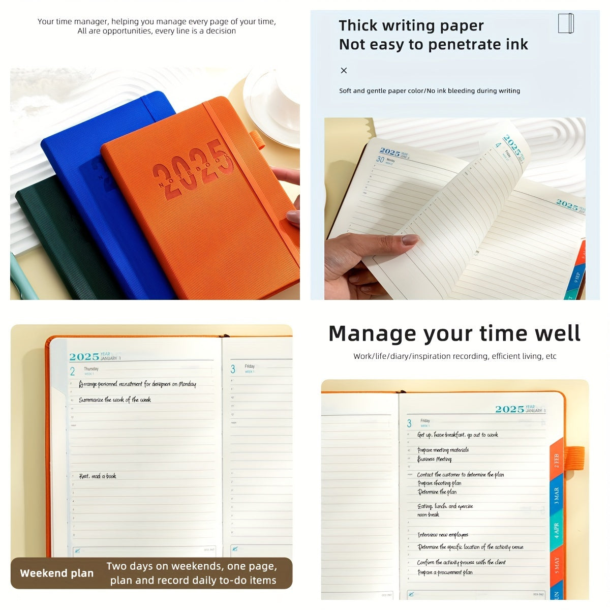 Календарь-планировщик на 2025 год с 400 страницами, утолщённой бумагой, дневником, управлением временем, органайзером для офисного стола для взрослых