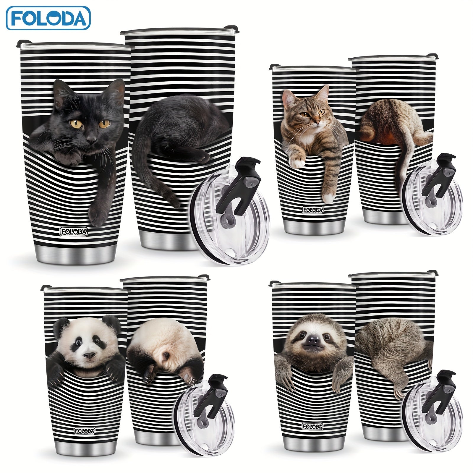 20 унций нержавеющая стальная кружка с крышкой, изолированная и непроницаемая, с дизайнами кота, панды и ленивца. Идеальный подарок на Рождество, дни рождения и День матери.