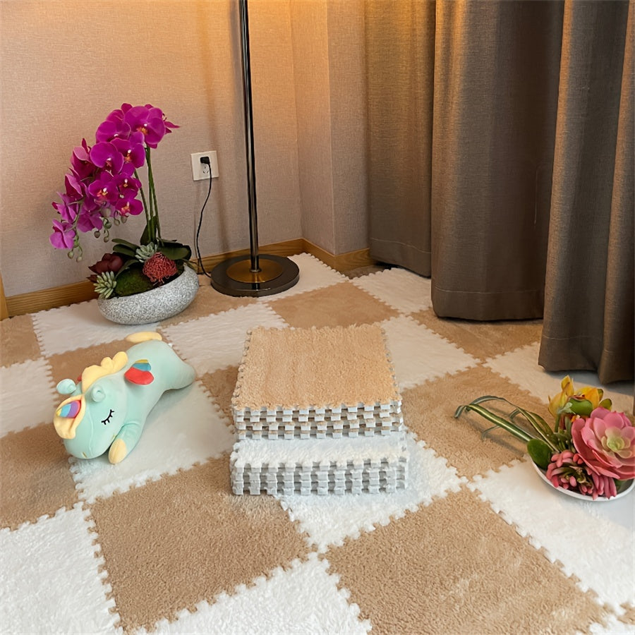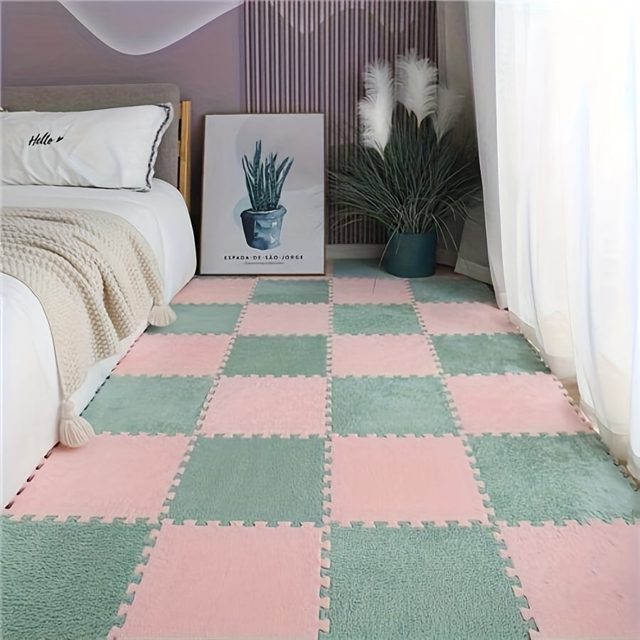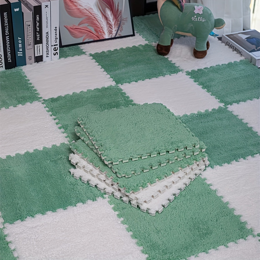 24 шт. светло-голубых и белых клетчатых соединяющихся пенопластовых напольных плиток 29,97 см для спальни, гостиной, детских комнат
