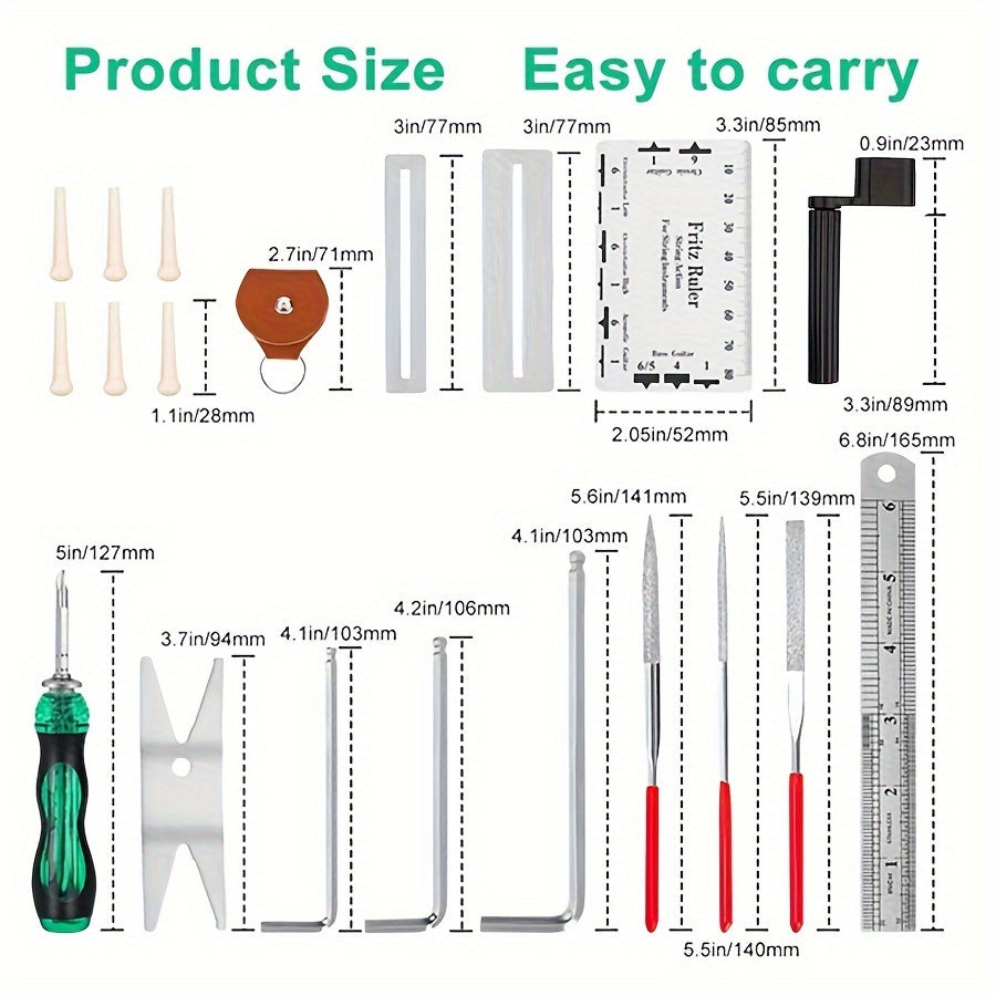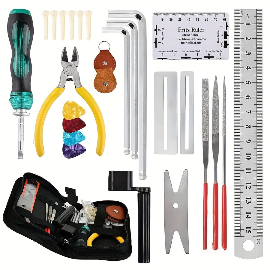 Набор инструментов для ремонта гитары из 26 предметов с плоскогубцами, ключами, напильниками, линейкой и сумкой