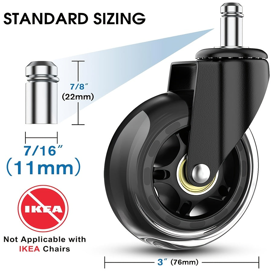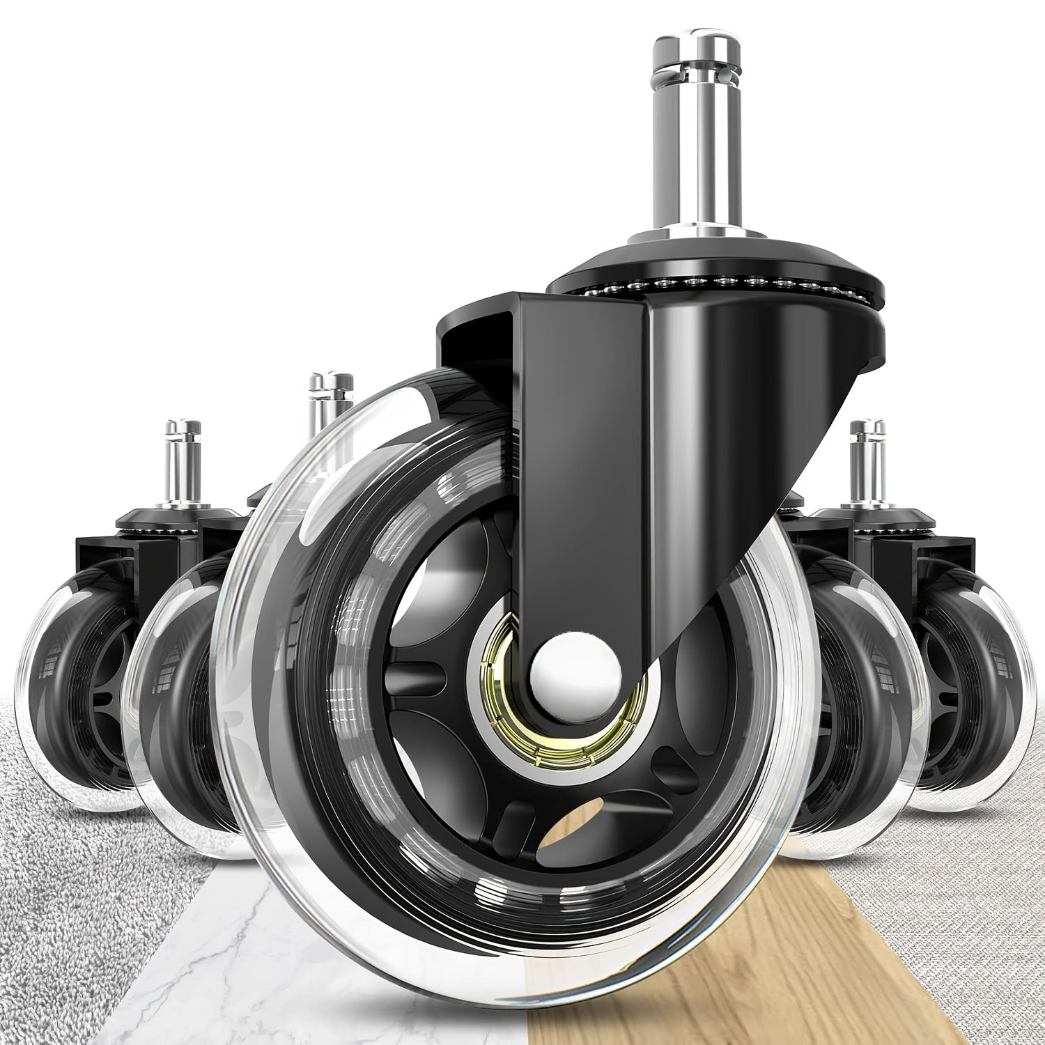 3-дюймовые черные прозрачные резиновые поворотные колеса для офисных кресел с бесшумными колесами