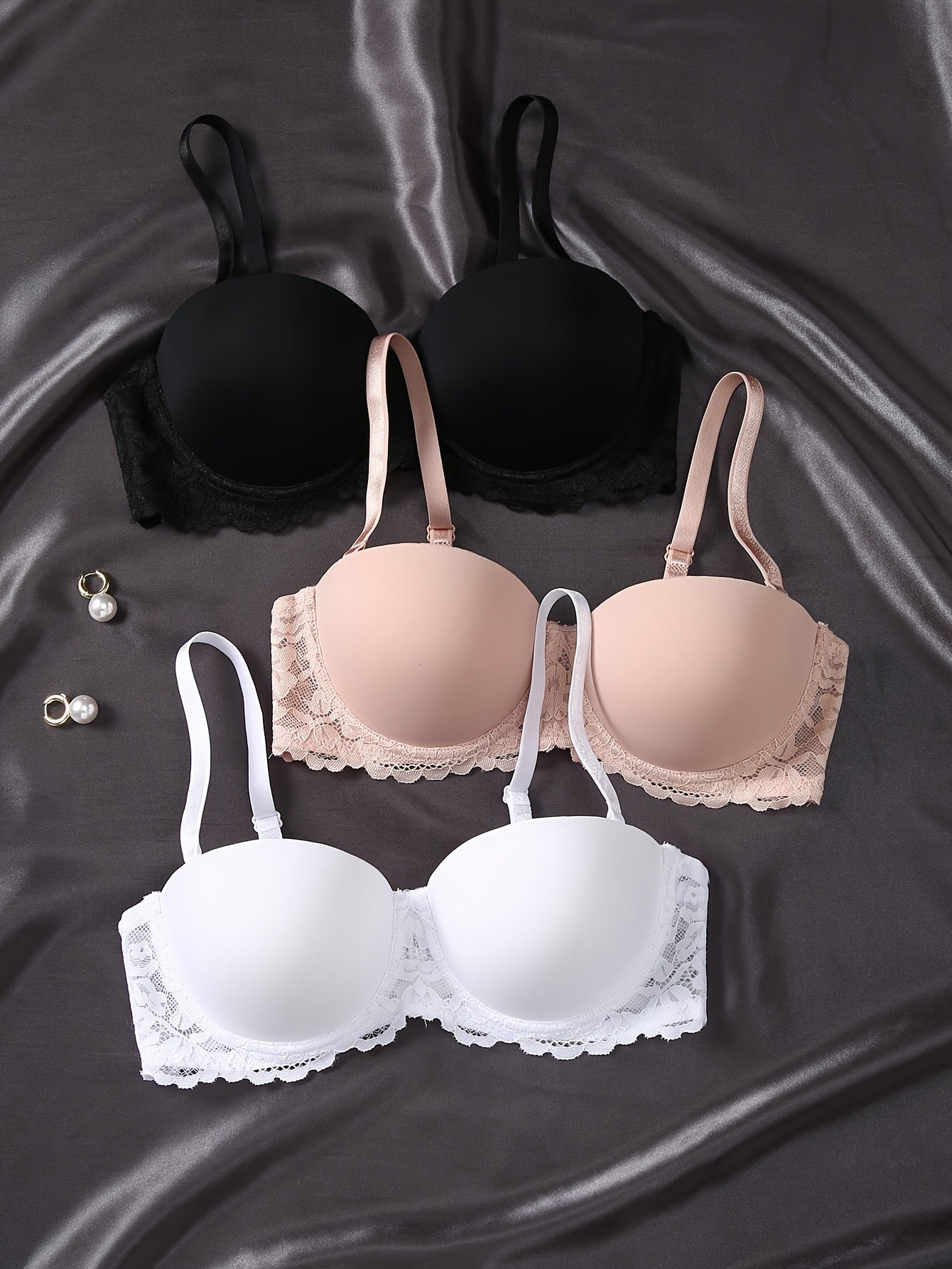 3 Контрастные кружевные бюстгальтеры-балконеты: Комфортное, дышащее пуш-ап белье для женщин