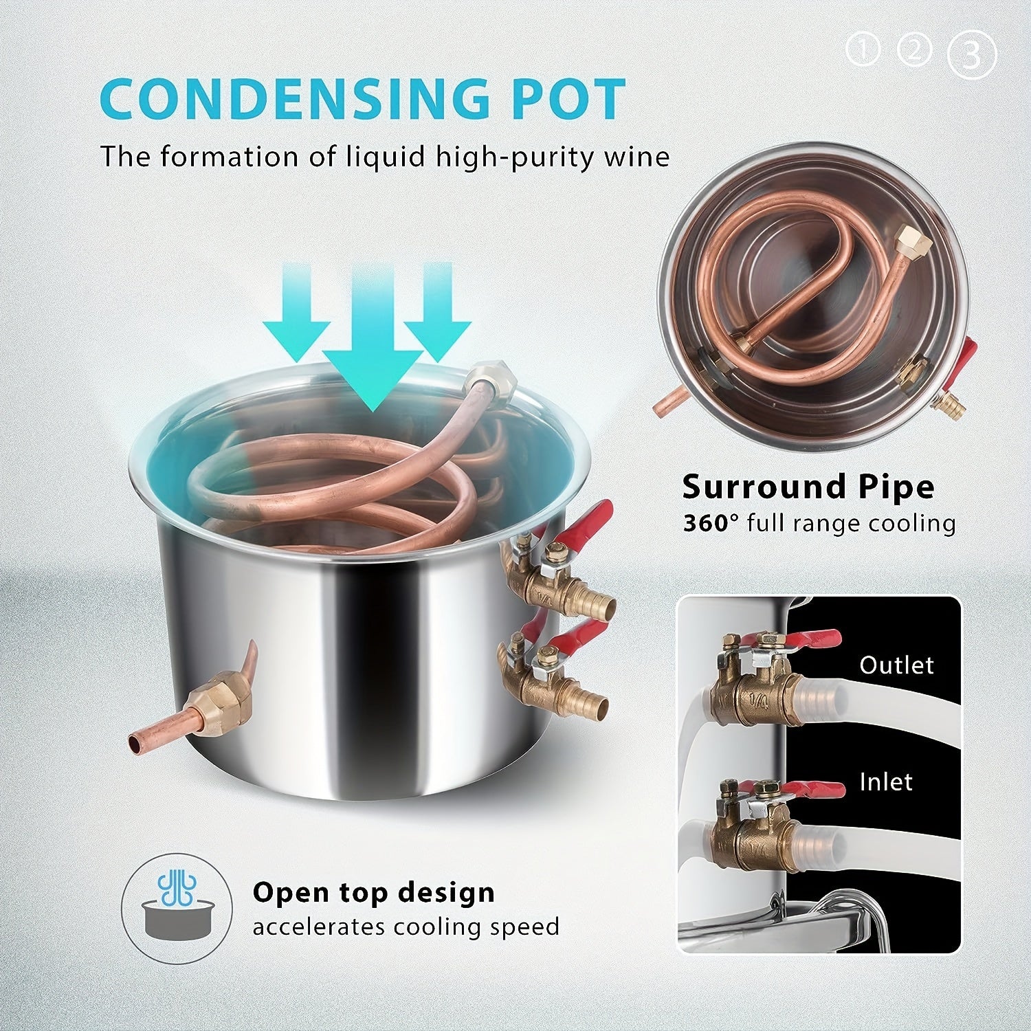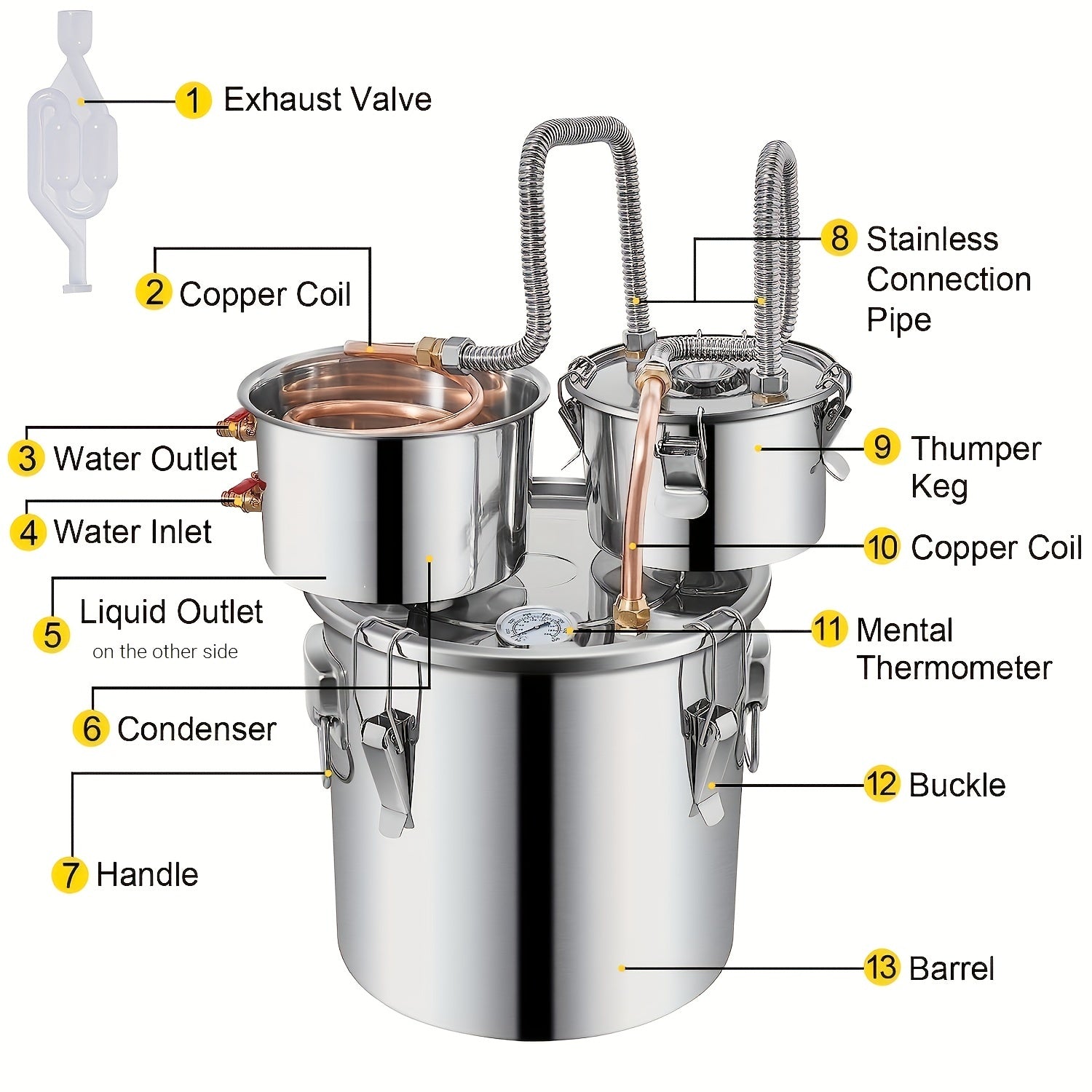 3-галлонный нержавеющий спиртовой дистиллятор с медной трубкой, термометром, водяным насосом, двойной бочкой - набор для домашнего пивоварения для виски, вина, бренди.