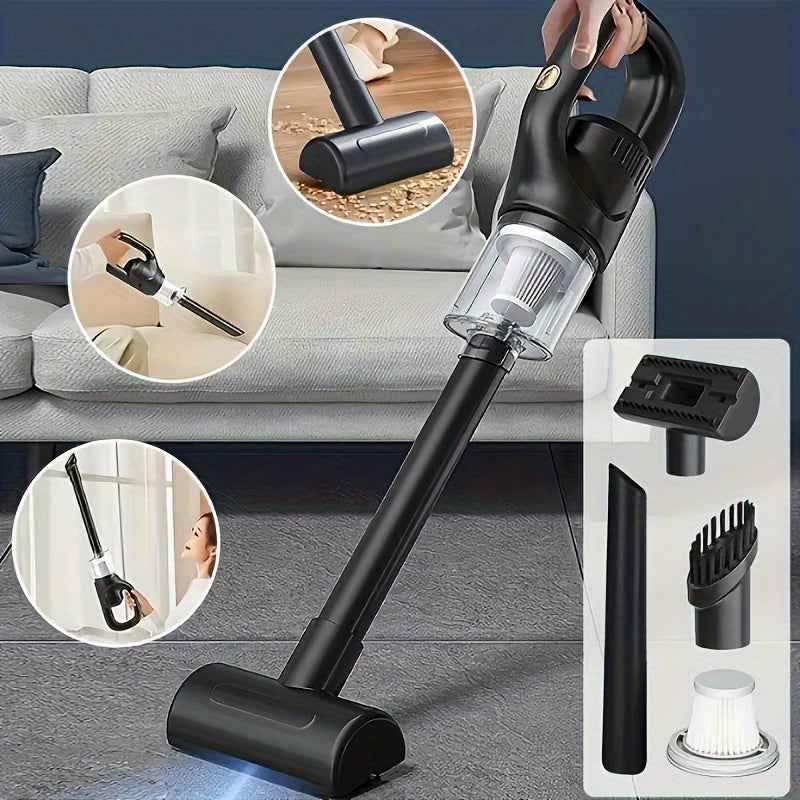 Головки щеток 3-в-1, беспроводной пылесос высокой мощности с портативным, низким уровнем шума, однокнопочным управлением, аккумулятором на литиевых батареях. Идеально подходит для использования дома и в автомобиле. Отличный подарок для дома и автомобиля.