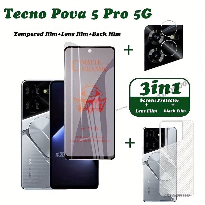 Защитное стекло с приватностью 3-в-1 для экрана и задней панели для Tecno Pova 5 Pro