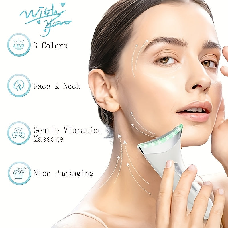 Массажер для шеи и лица с функцией 3-в-1, перезаряжаемый через USB, с режимами нагрева, вибрации и для лба. Работает на литиевой батарее, идеально подходит в качестве подарка для женщин.