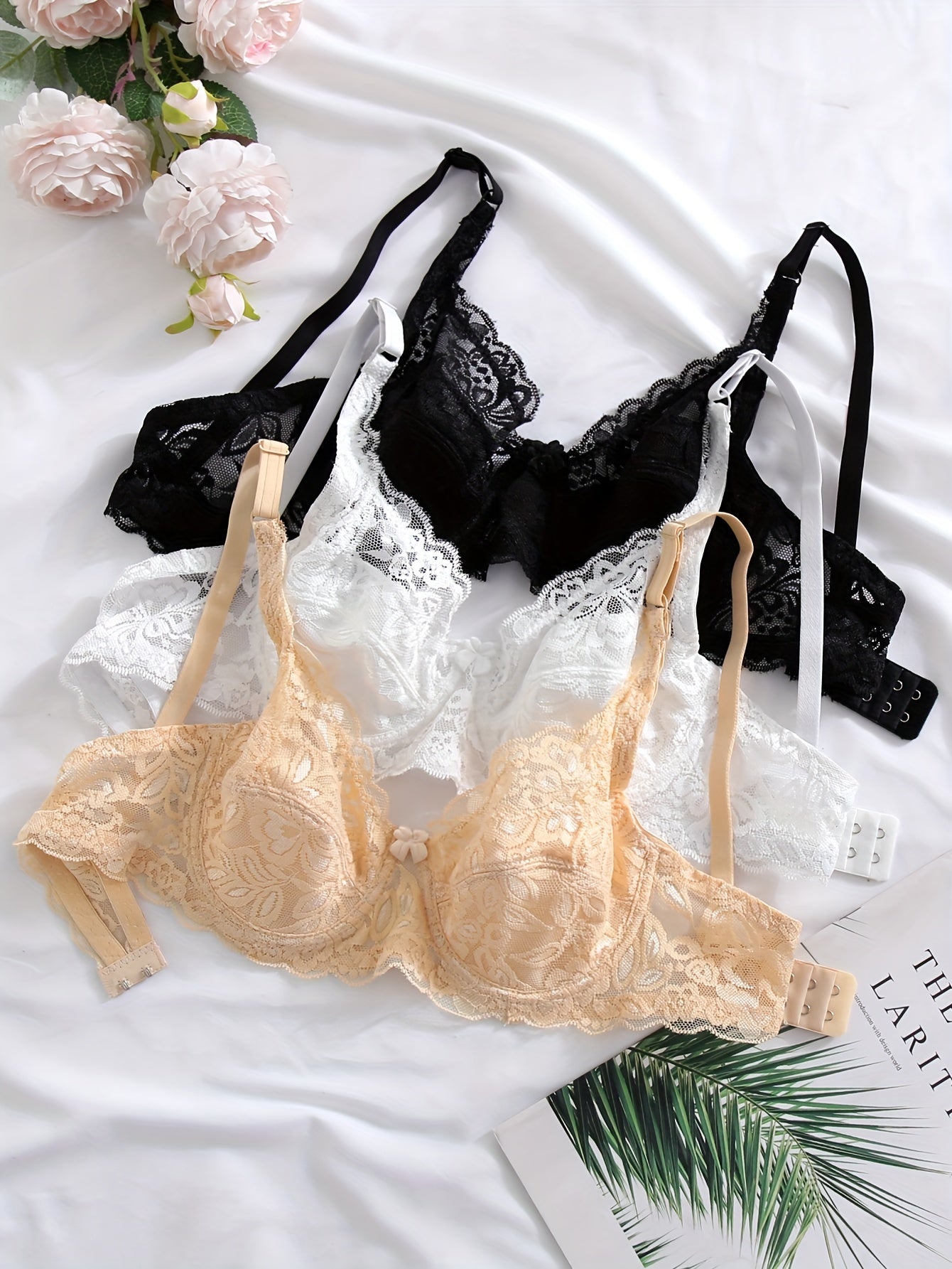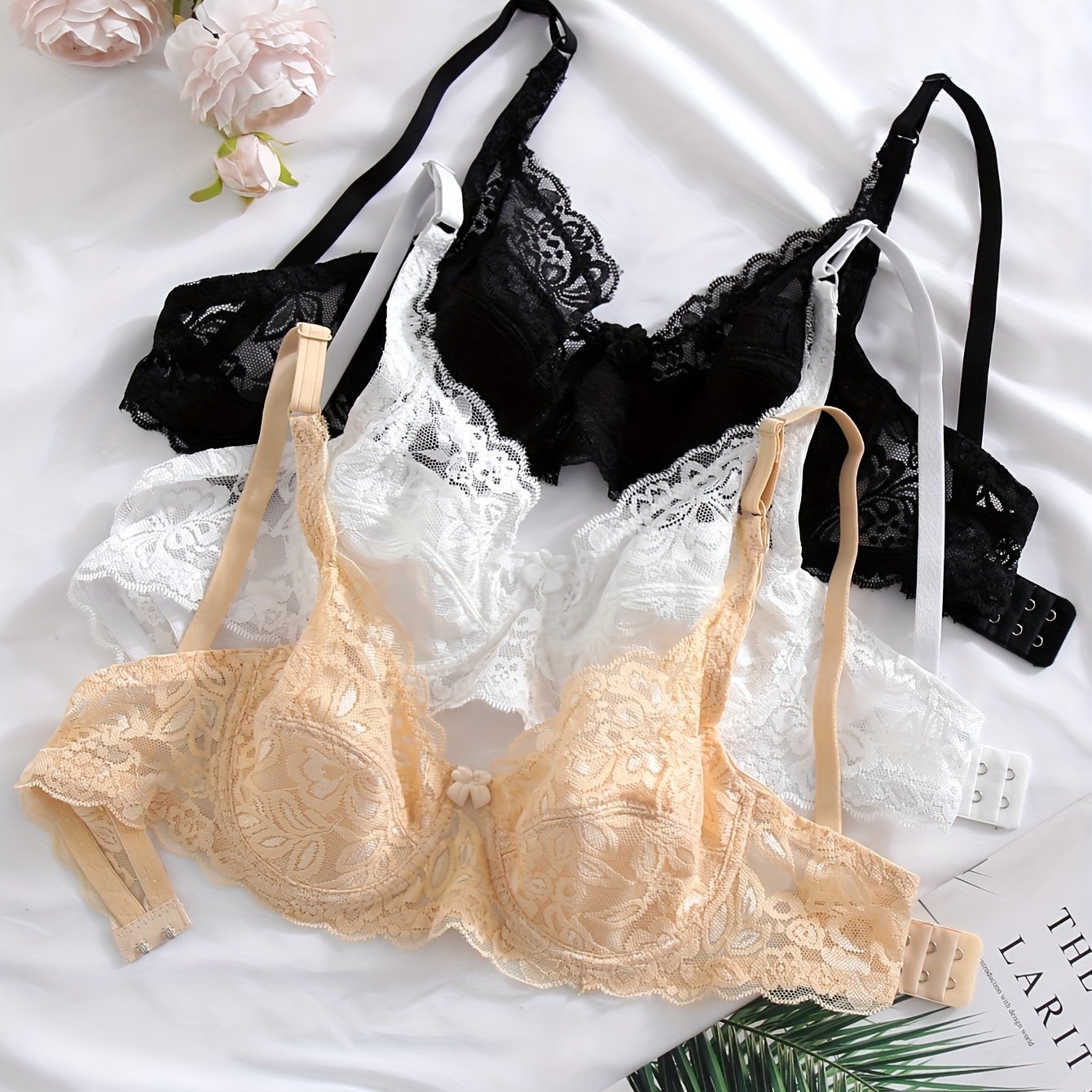 3-упаковка кружевных бюстгальтеров с эффектом пуш-ап для женщин, 70% спандекс, однотонные с бантиком, с косточками, без подкладки, женское белье