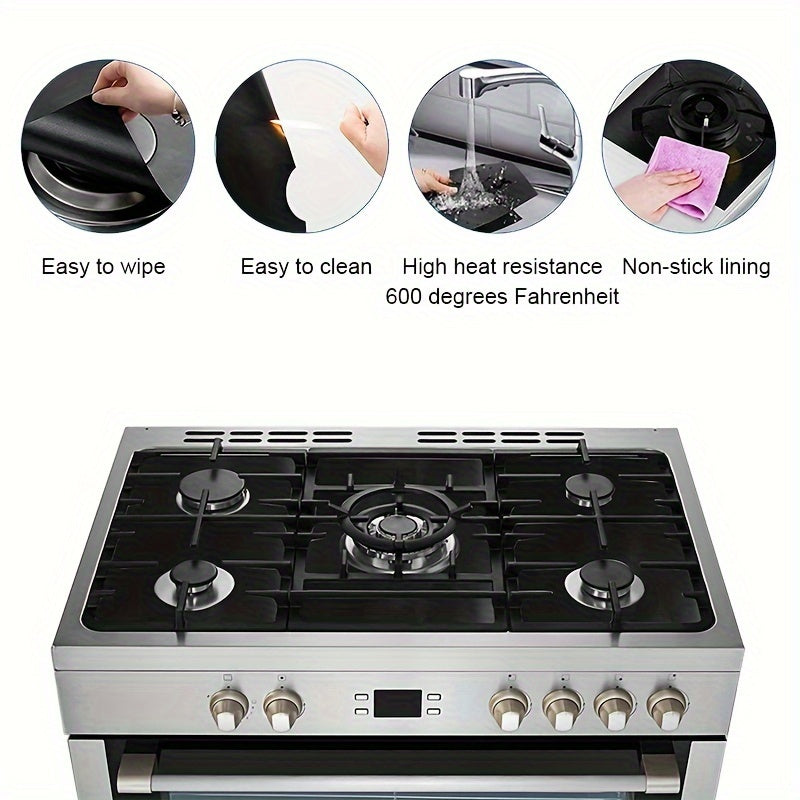 3-пакет защитных ковриков для газовой плиты, которые обладают высокой термостойкостью, толщиной 0,2 мм. Эти коврики легко чистятся, многоразовые и изготовлены из материала PTFE. Они служат защитным барьером для вашей плиты, сохраняя её от масла и грязи.