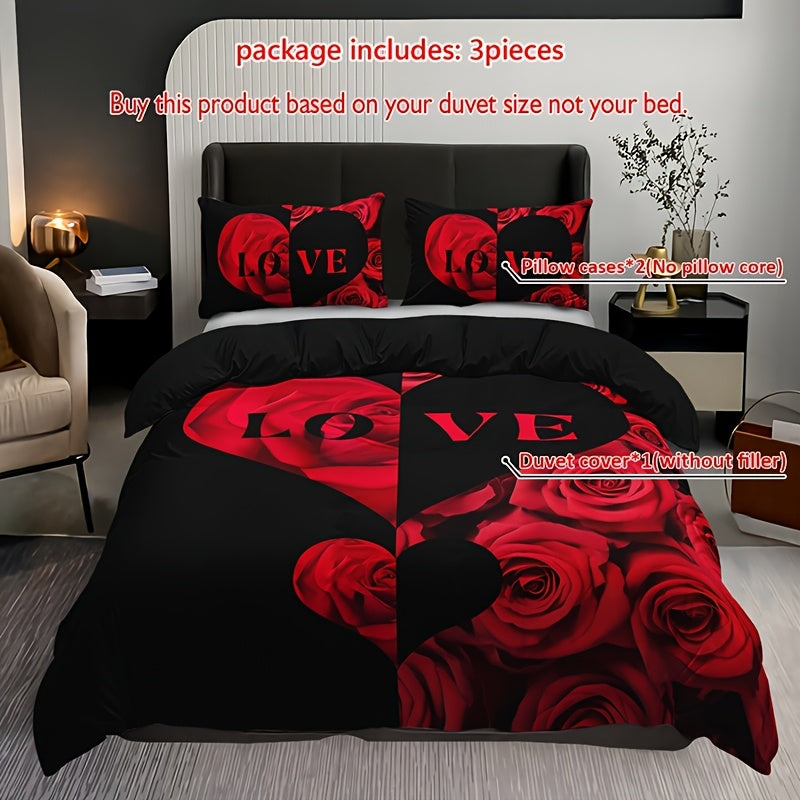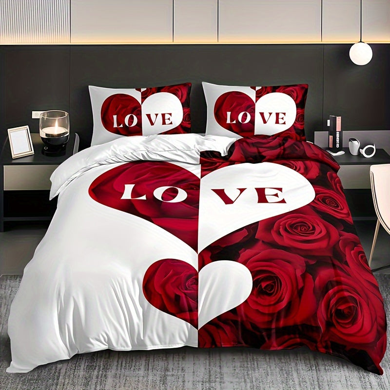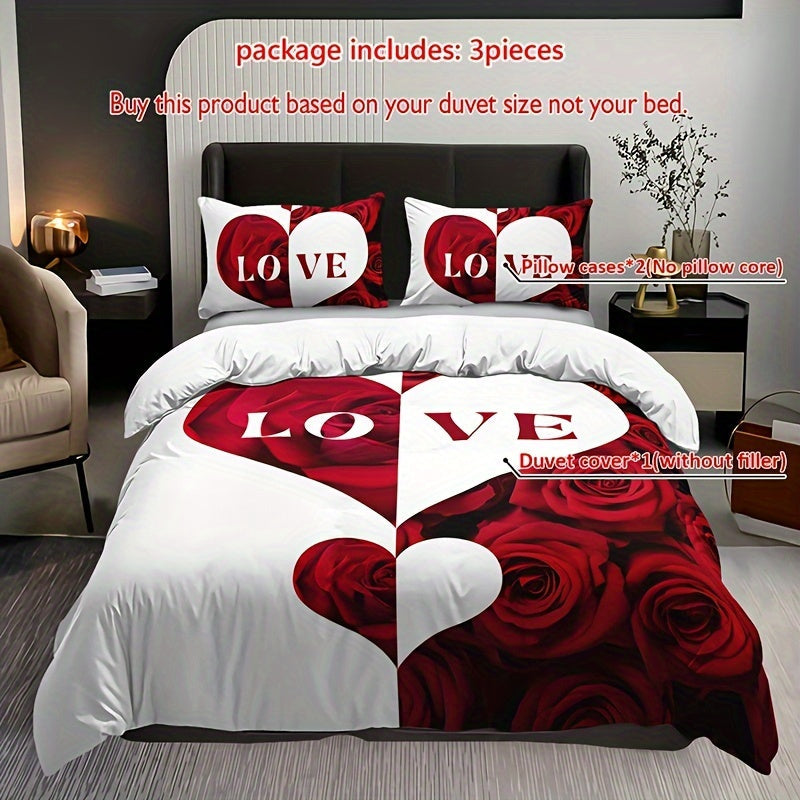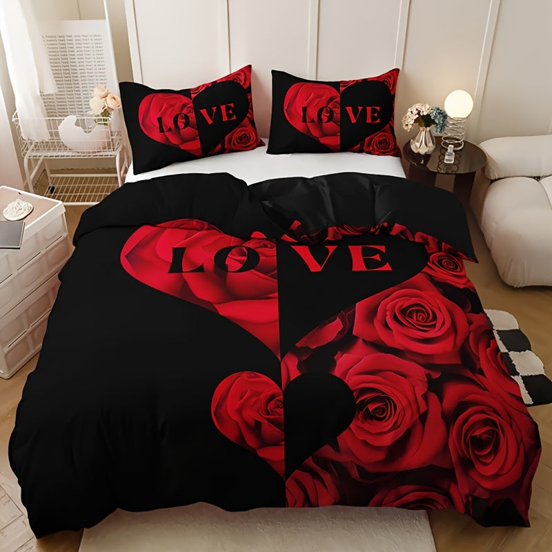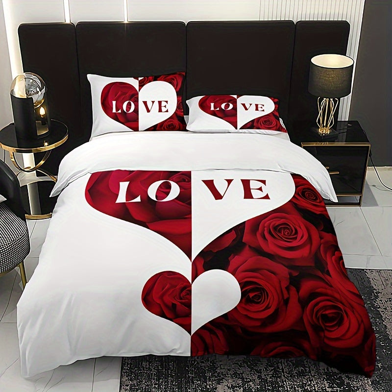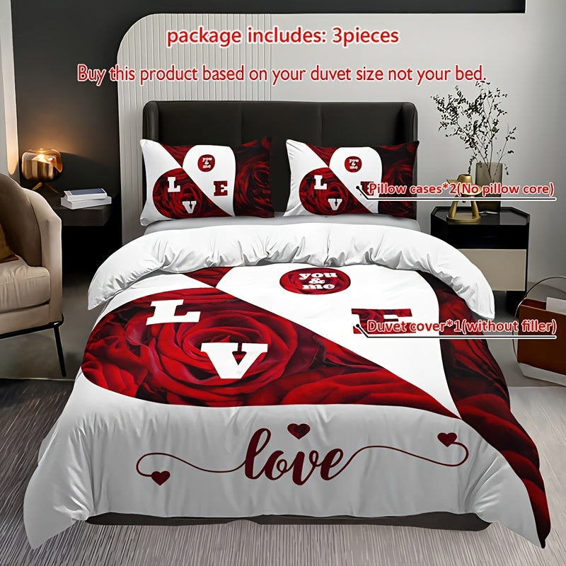 Комплект постельного белья из 3 предметов с цветочным узором и дизайном алфавита, включает 1 пододеяльник и 2 наволочки, изготовлен из дышащего и мягкого материала.