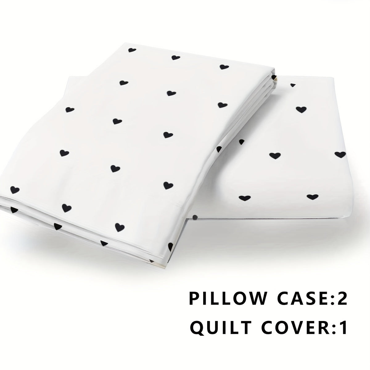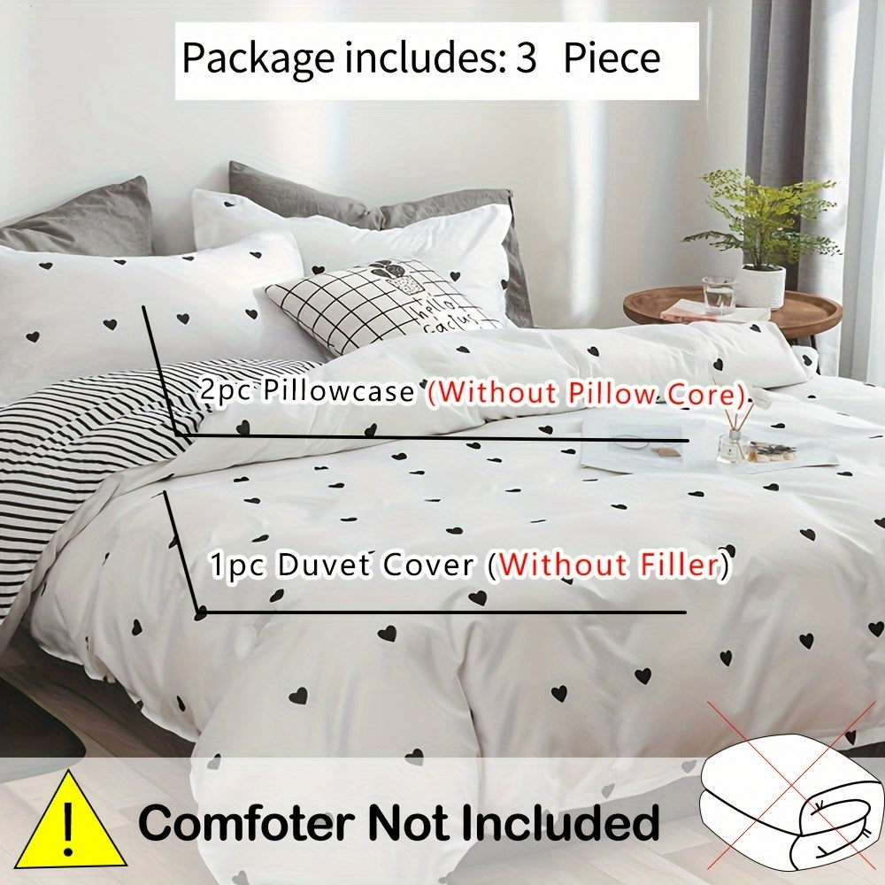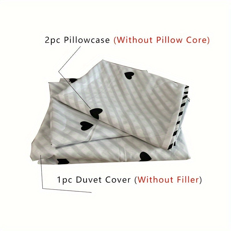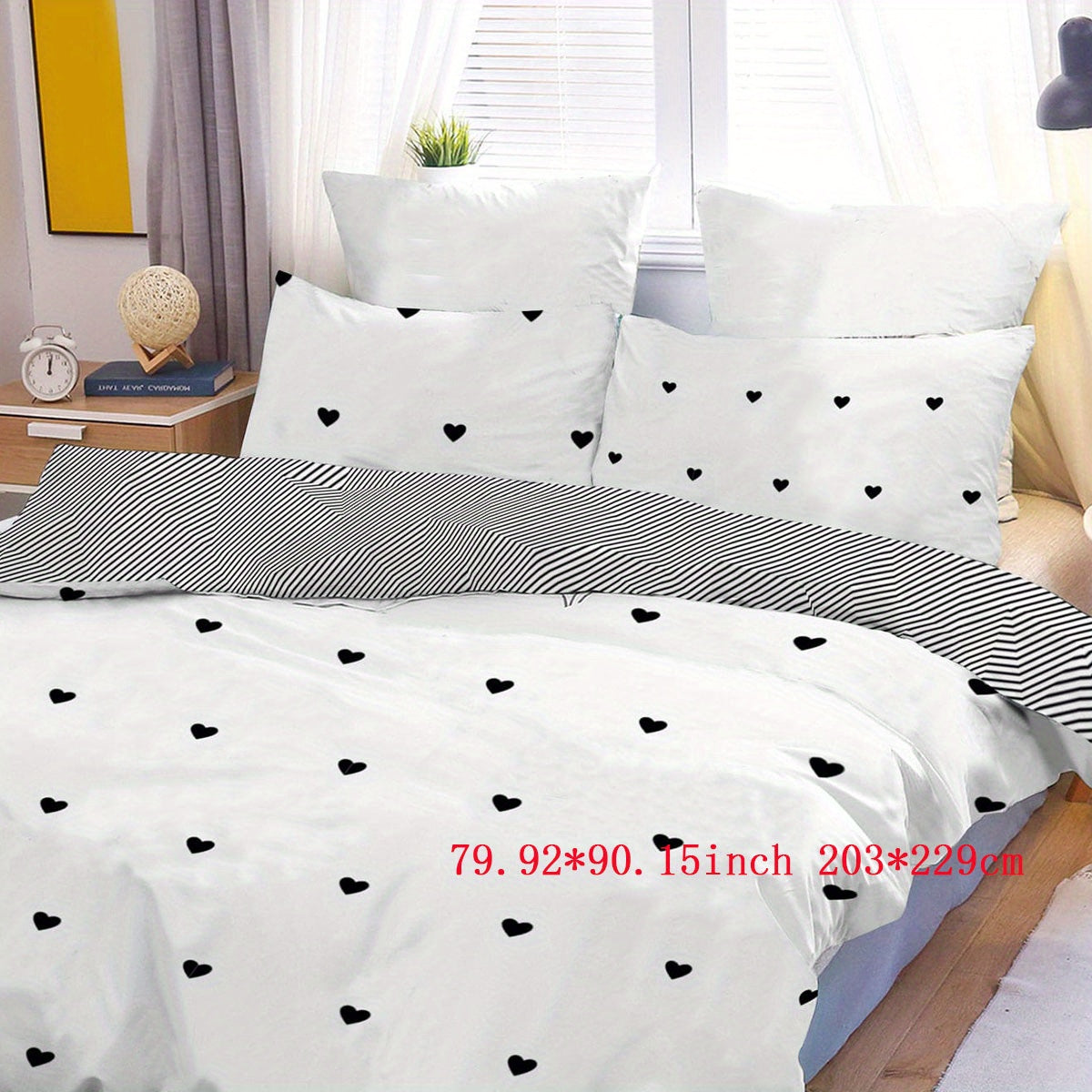 Комплект постельного белья из 3 предметов с черным принтом "Любовь", мягкий и удобный комплект для спальни, гостевой комнаты, студенческого общежития. Включает 1 пододеяльник и 2 наволочки. Ядро не включено.