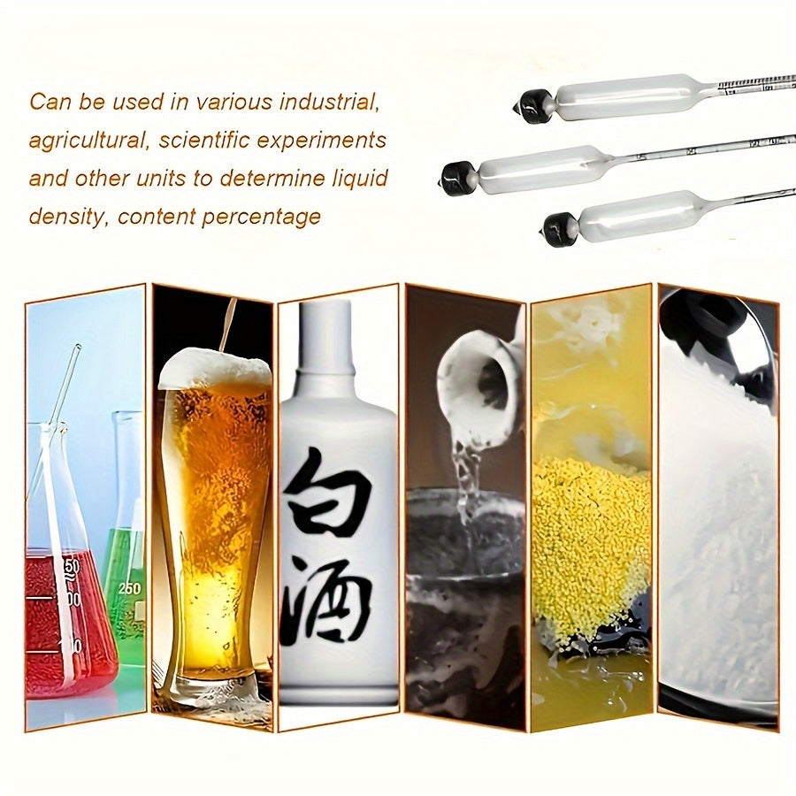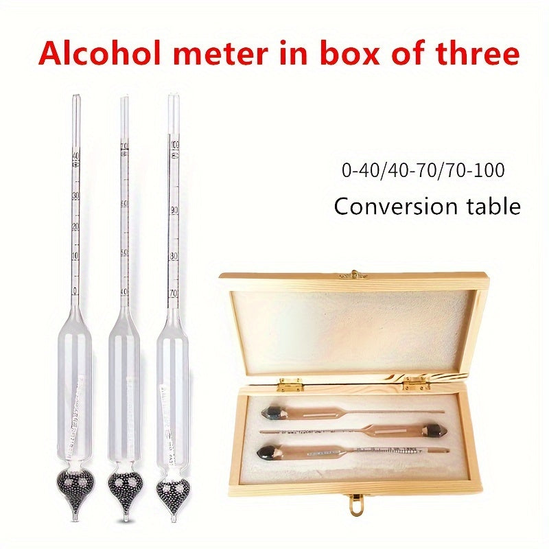 Набор из 3-х спиртометров с таблицей преобразования 0-100 пруф для виноделия и тестирования спиртных напитков