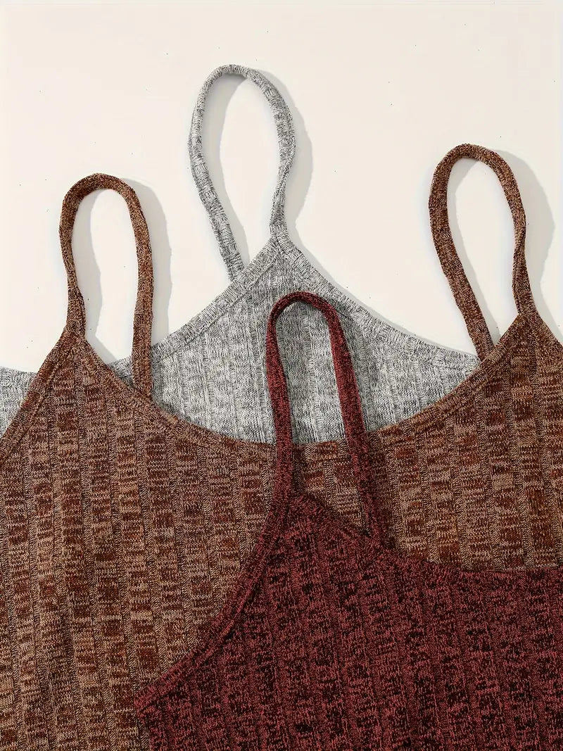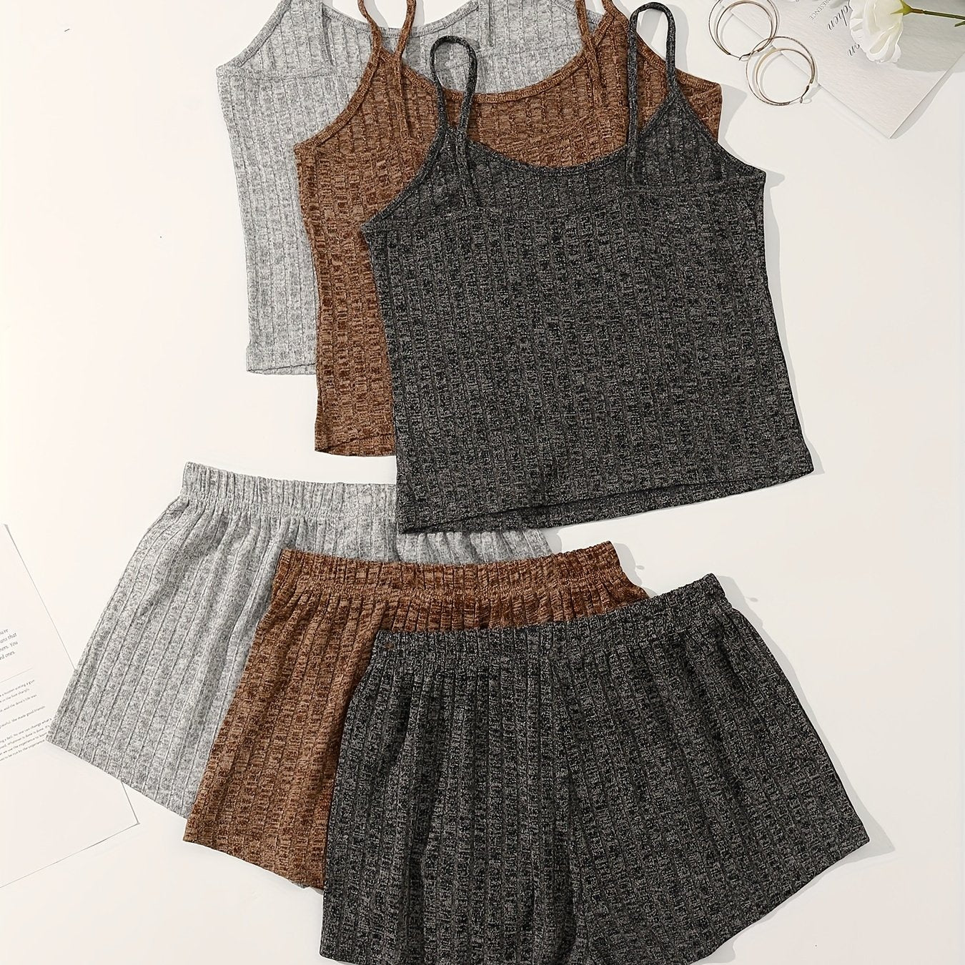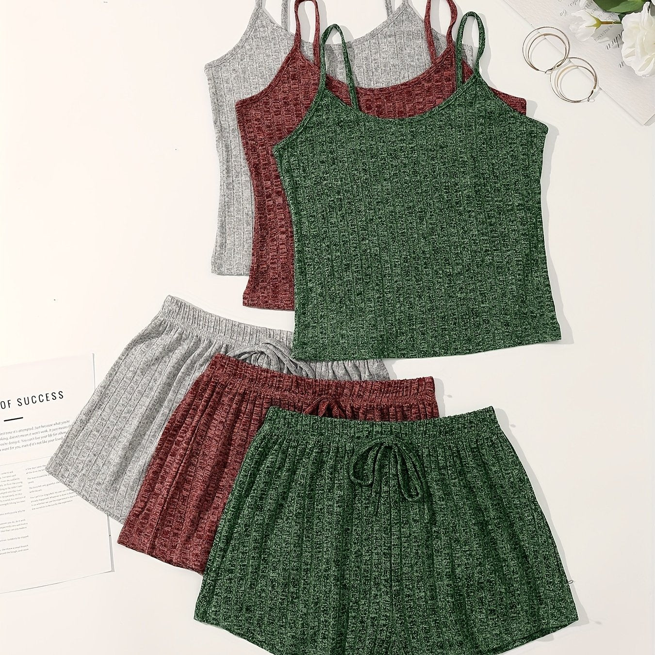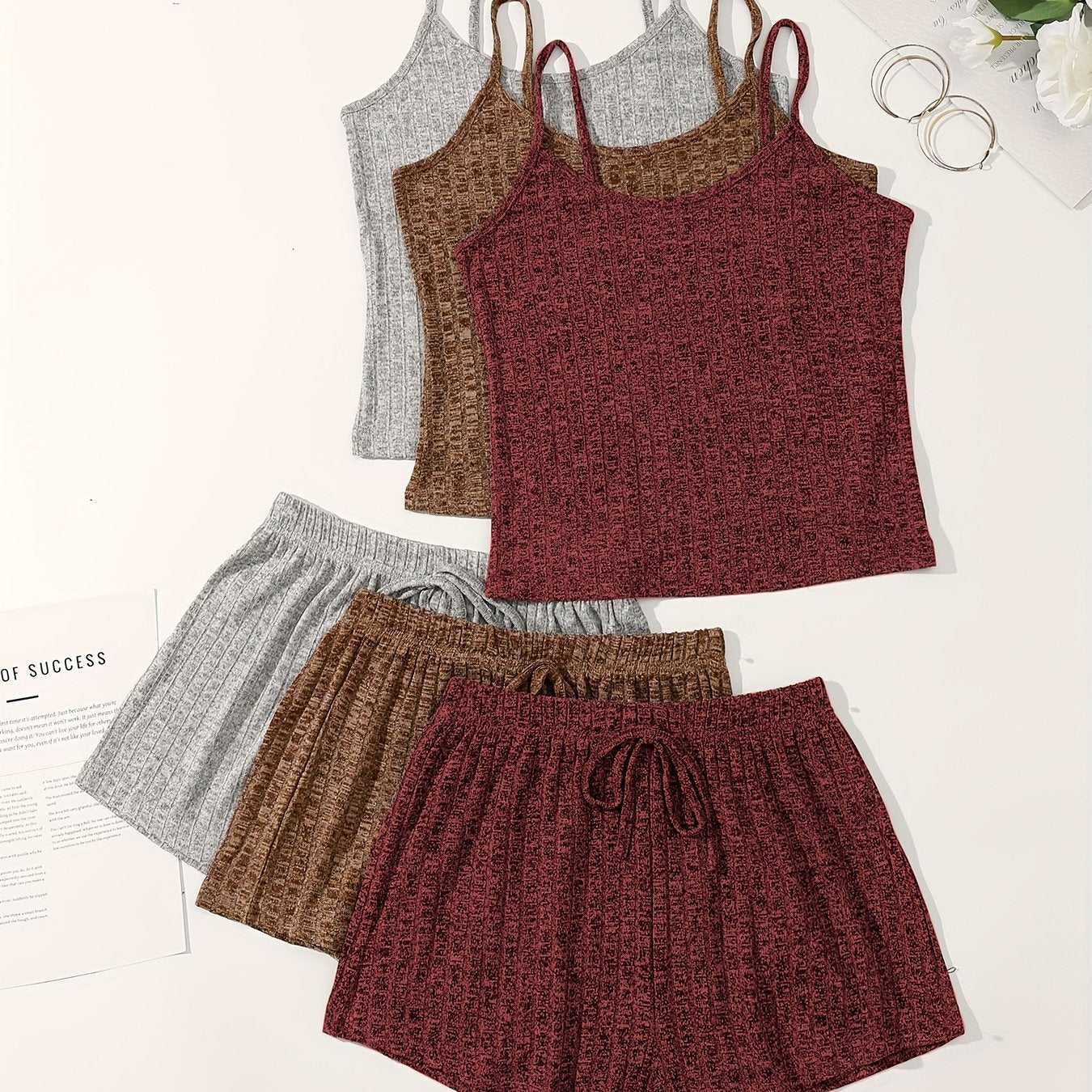 3-компонентный рифленый комплект для отдыха для женщин, включающий повседневный топ без спинки и шорты на шнуровке.