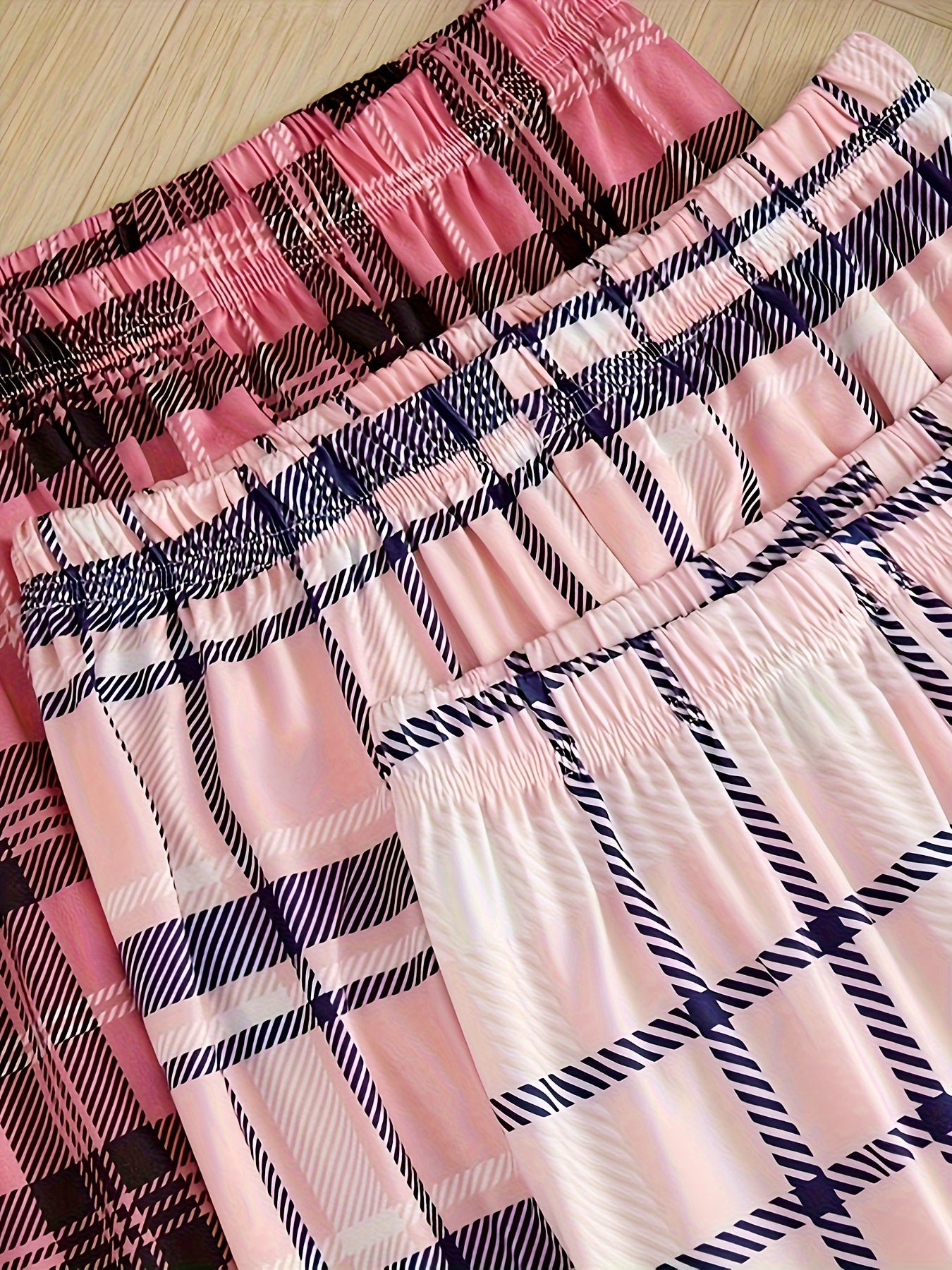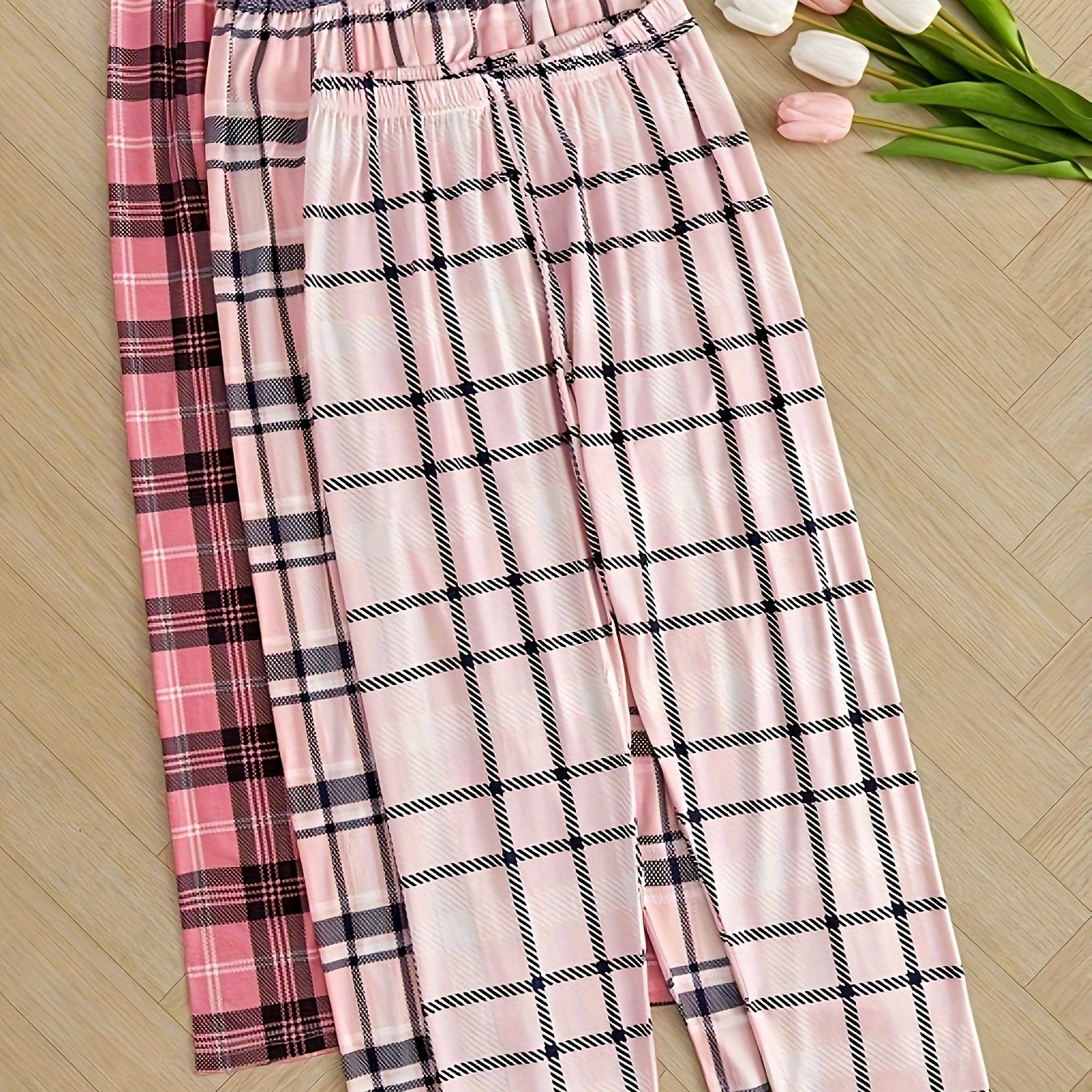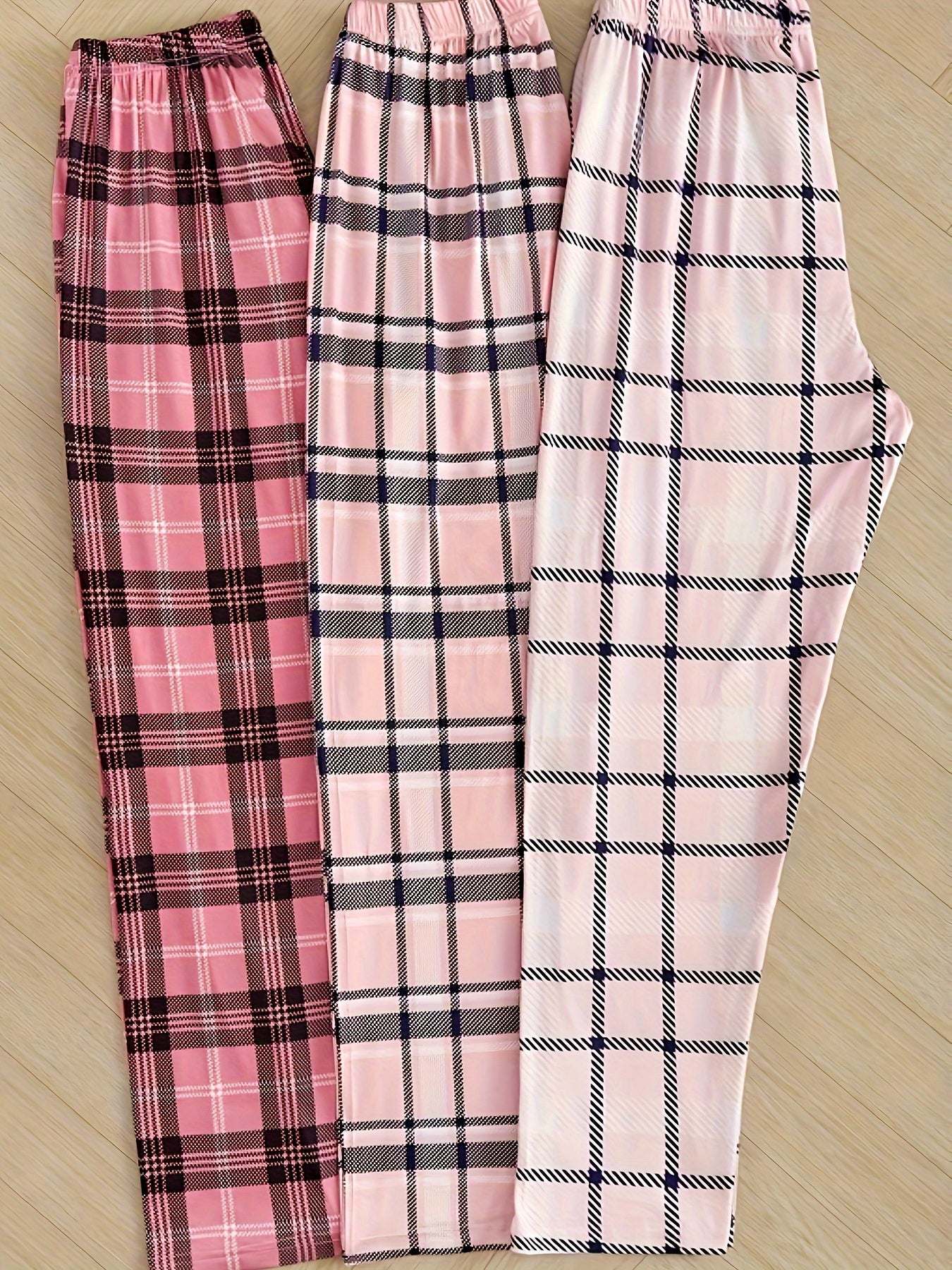 3 Пижамные брюки в клетку с эластичным высоким поясом для женской ночной и домашней одежды