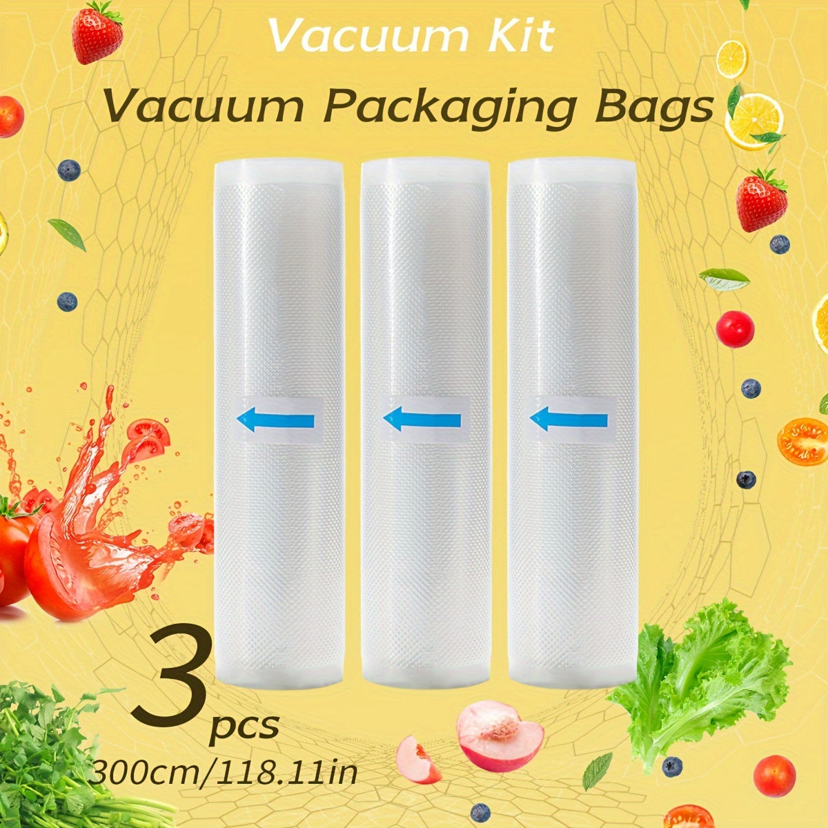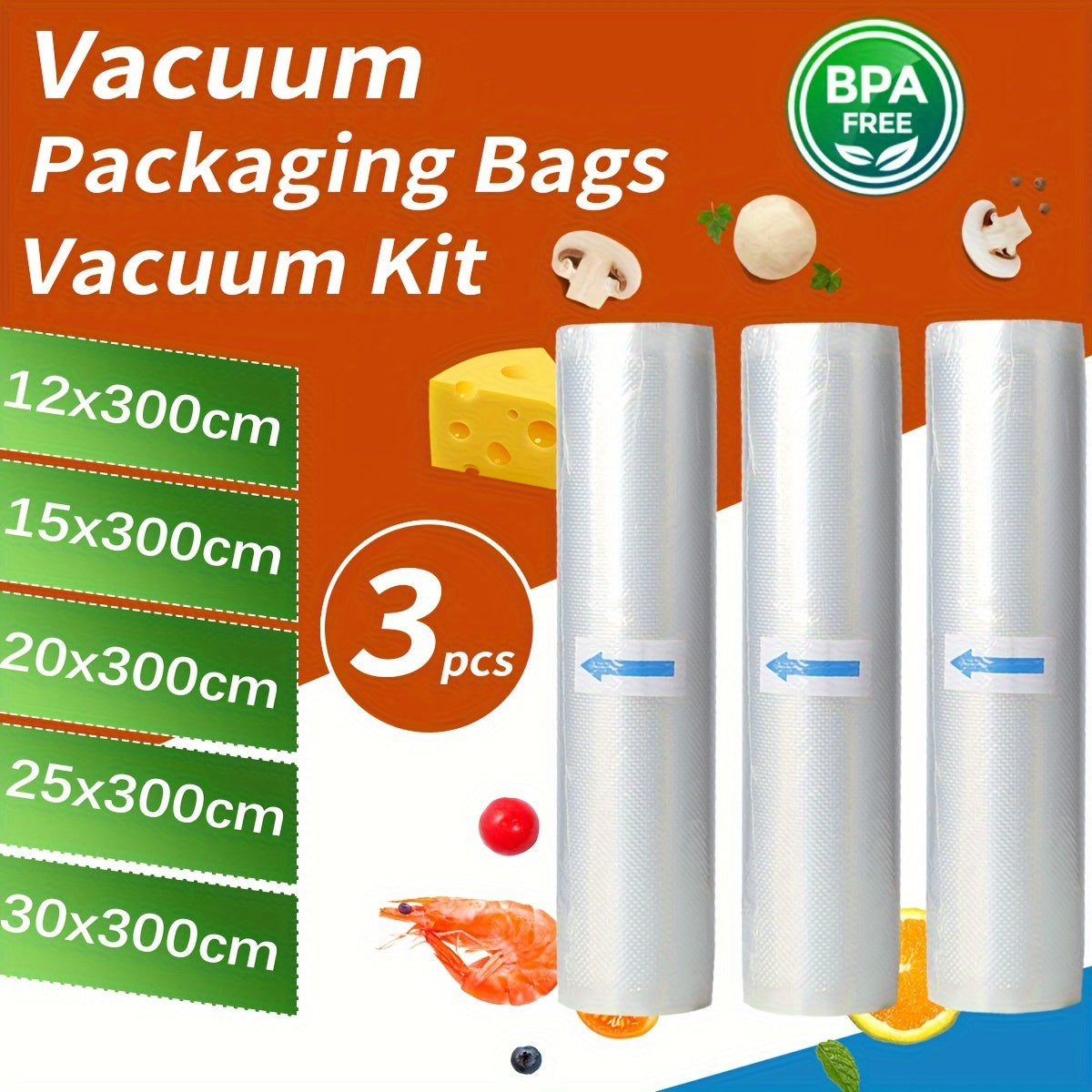 3 рулона вакуумных пакетов для продуктов питания 3м, без бисфенола А, семислойные экструзионные вакуумные пленки с алмазным узором для сохранения и упаковки продуктов.