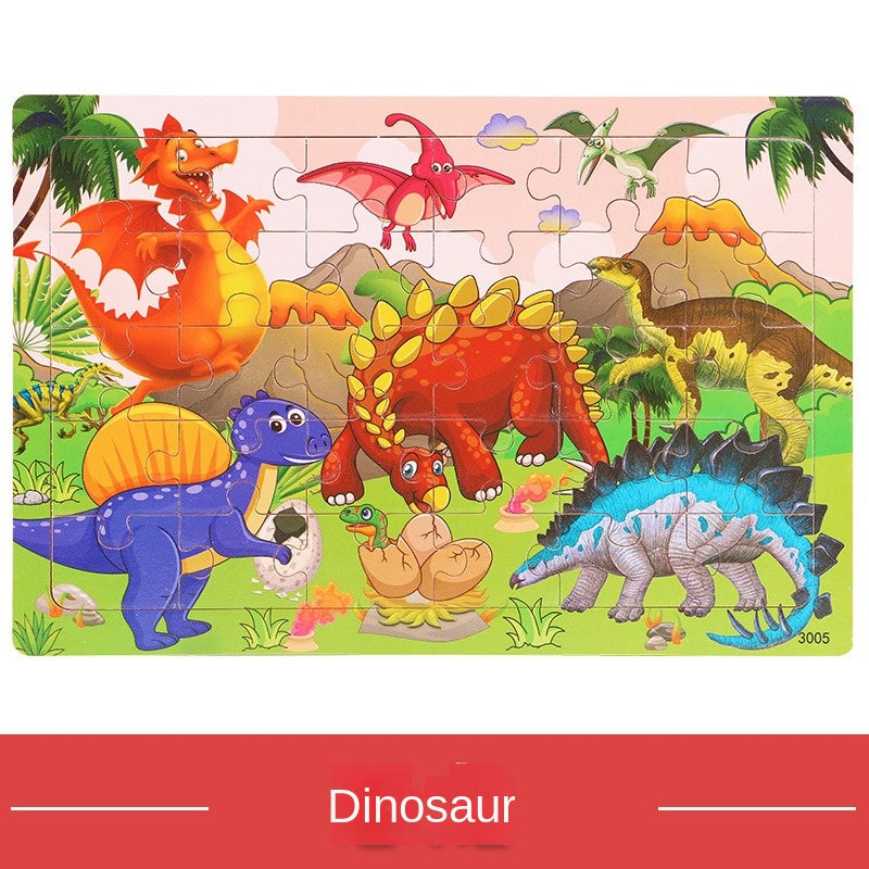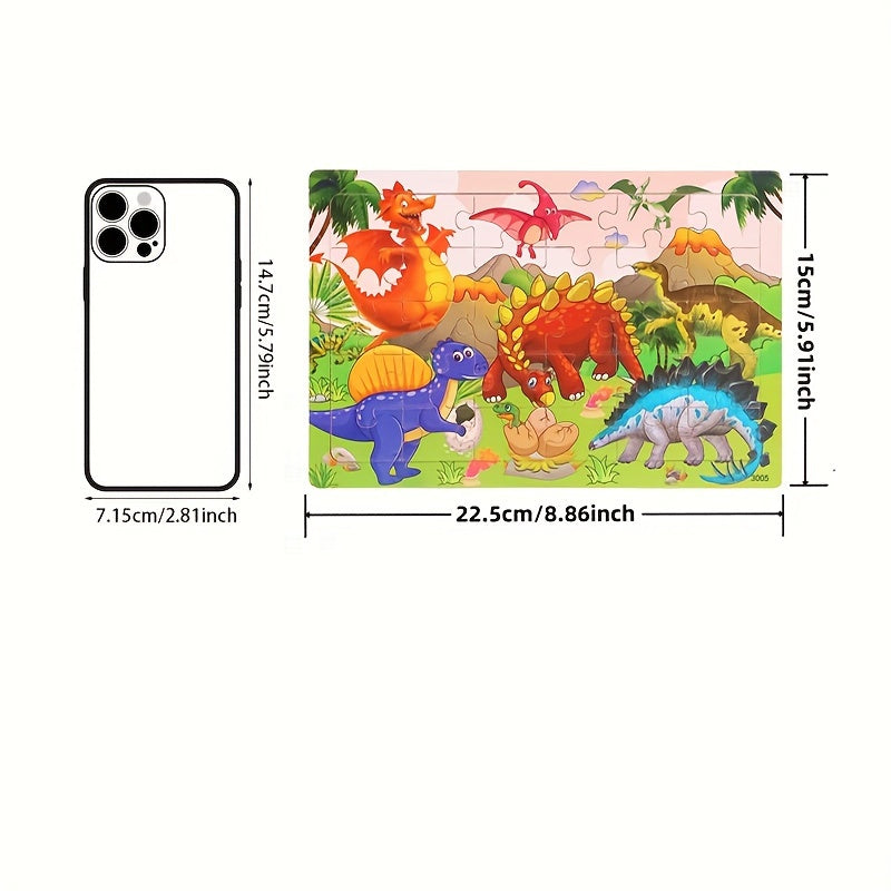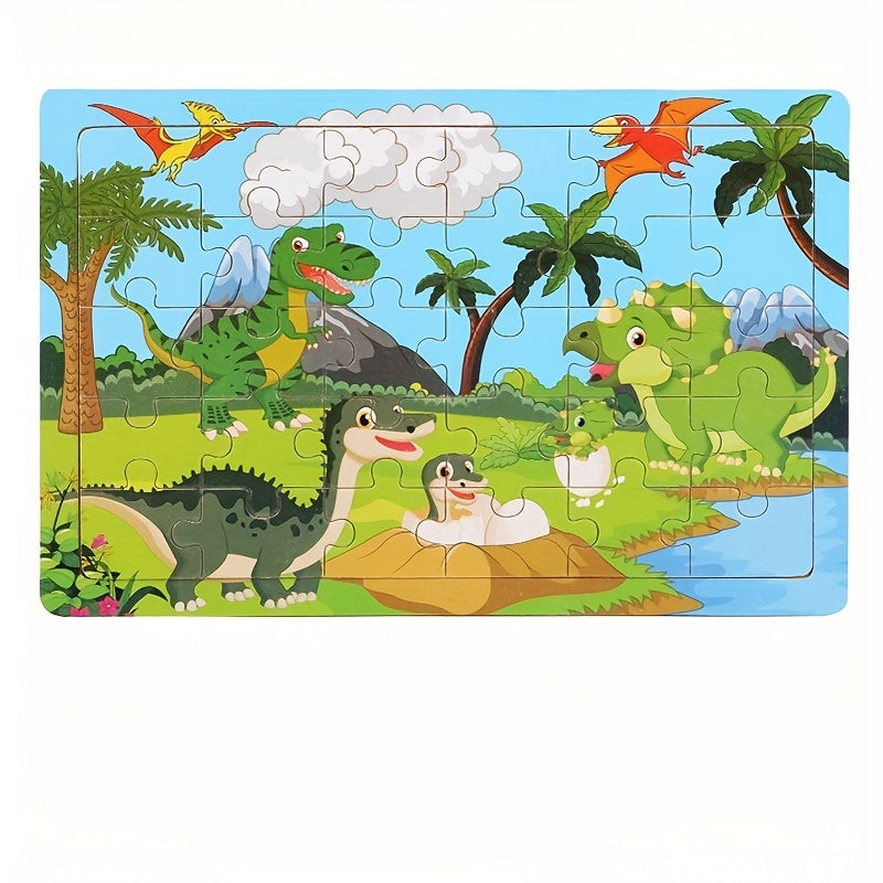 30-детальный деревянный пазл с динозаврами для детей, образовательная игрушка с красочной картой