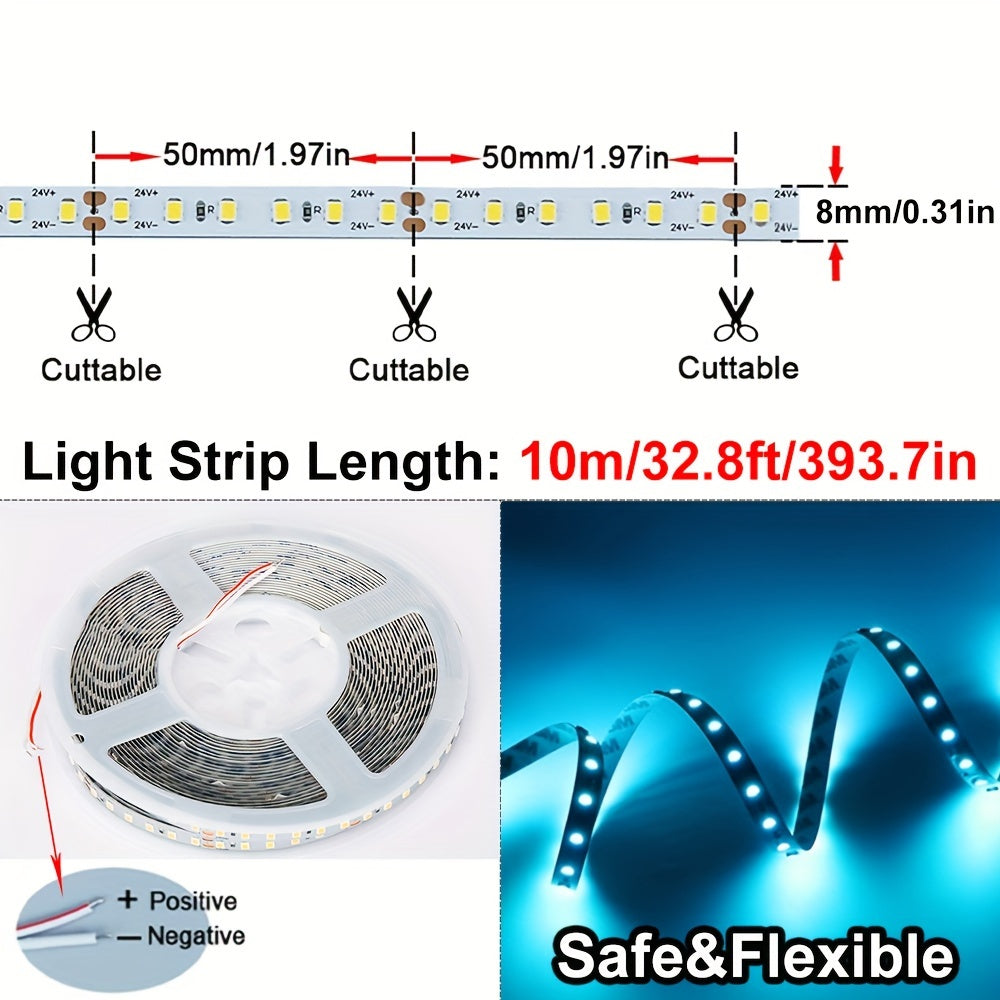 Светодиодные ленты 32,8 фута/10 м, 24 В, 2835 120 светодиодов/м, для домашнего декора, пластиковый материал, постоянный ток.