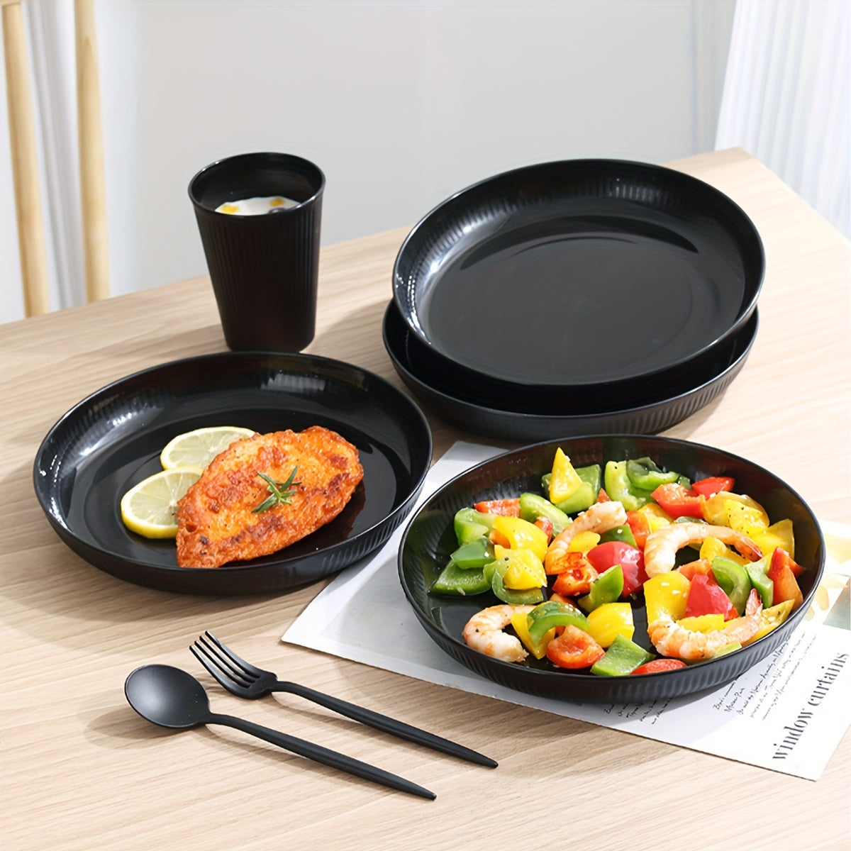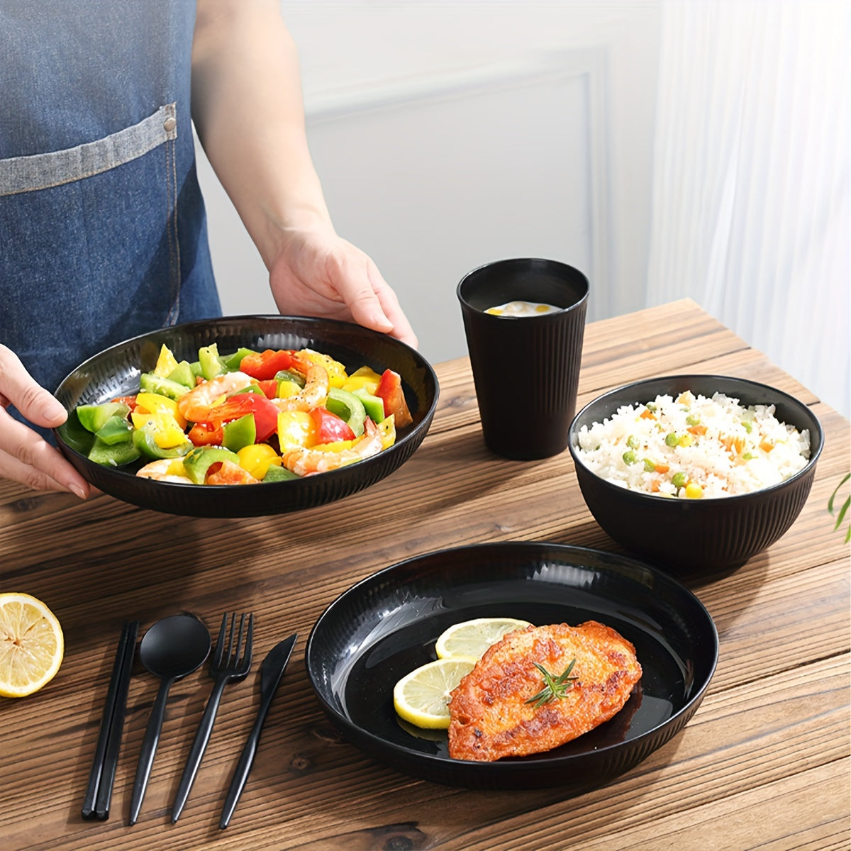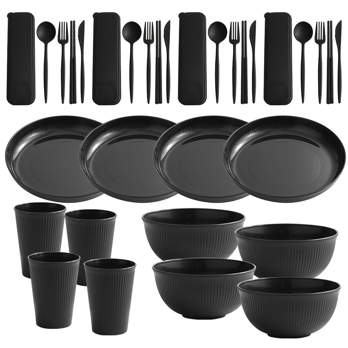 32-частный высококачественный черный набор столовых приборов для дома, ресторана или использования на открытом воздухе, разработанный для предотвращения падений.