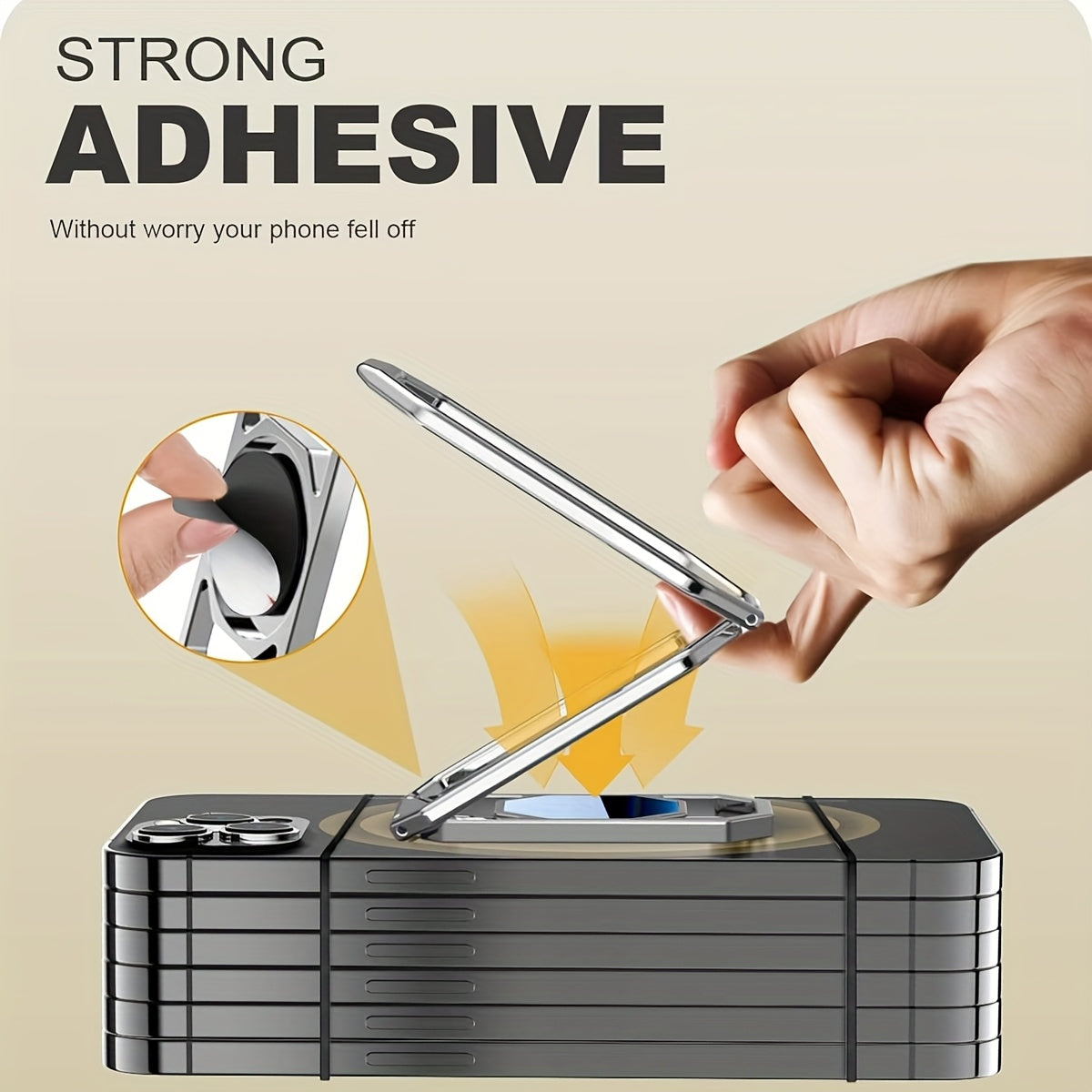 Прочный металлический держатель для телефона из цинкового сплава с вращением на 360 градусов и клеевым креплением для iPhone и Samsung Galaxy