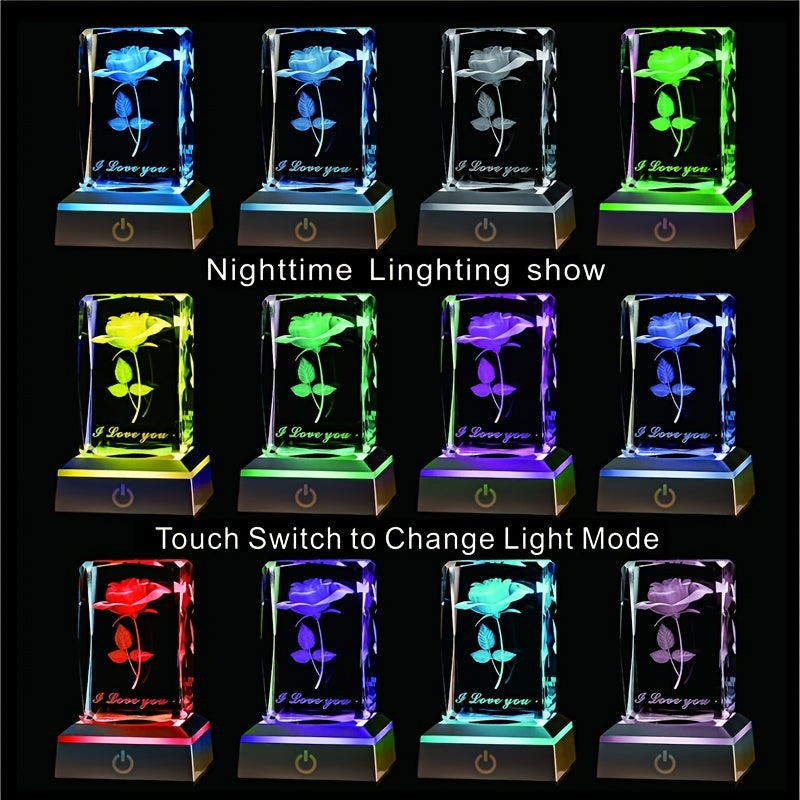 3D Розовая кристальная лампа с LED-подсветкой для Дня матери, дня рождения, юбилея, настольного декора