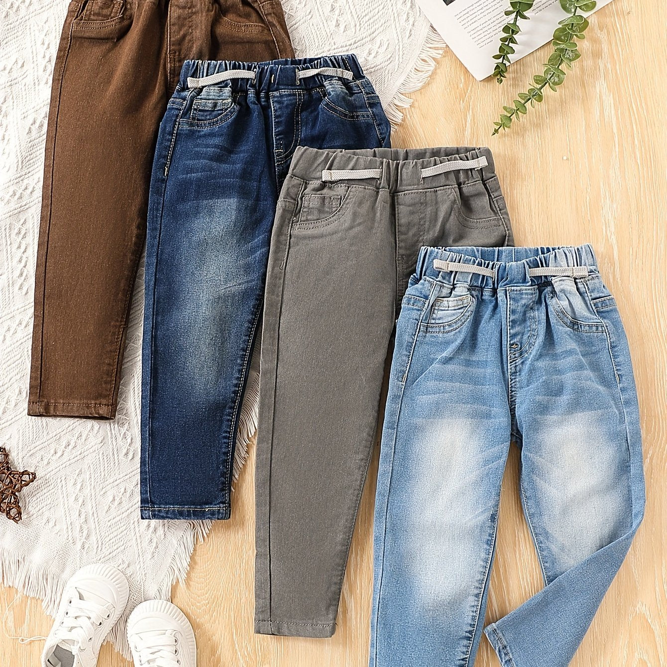Детский набор джинсовых штанов для мальчиков, 4 шт., классическая посадка, эластичный пояс, всесезонный