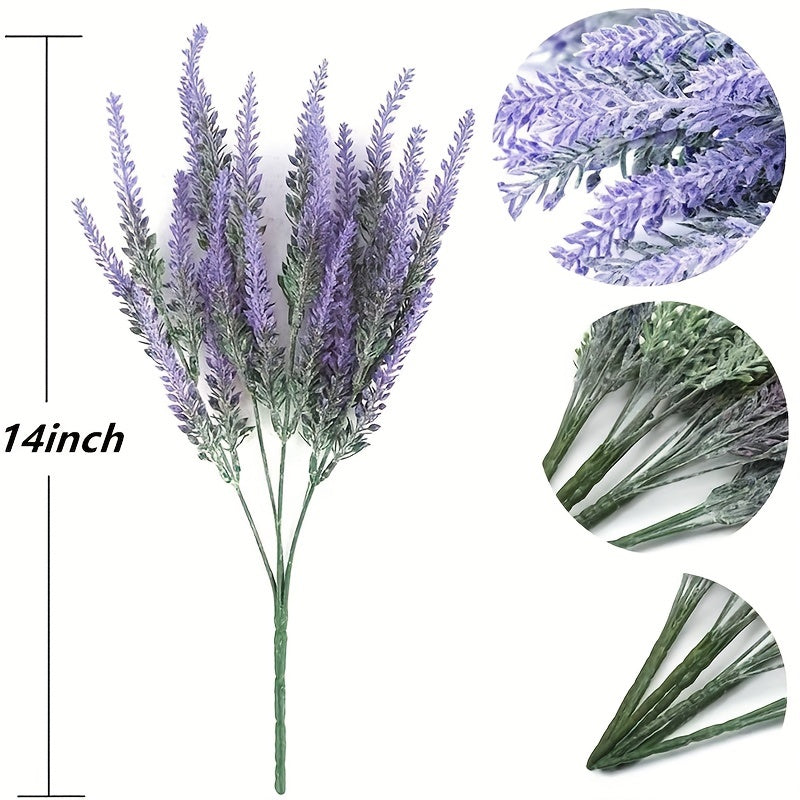 4 пучка искусственного лаванды из фальшивого пластикового фиолетового цветка для домашнего декора внутри и снаружи.