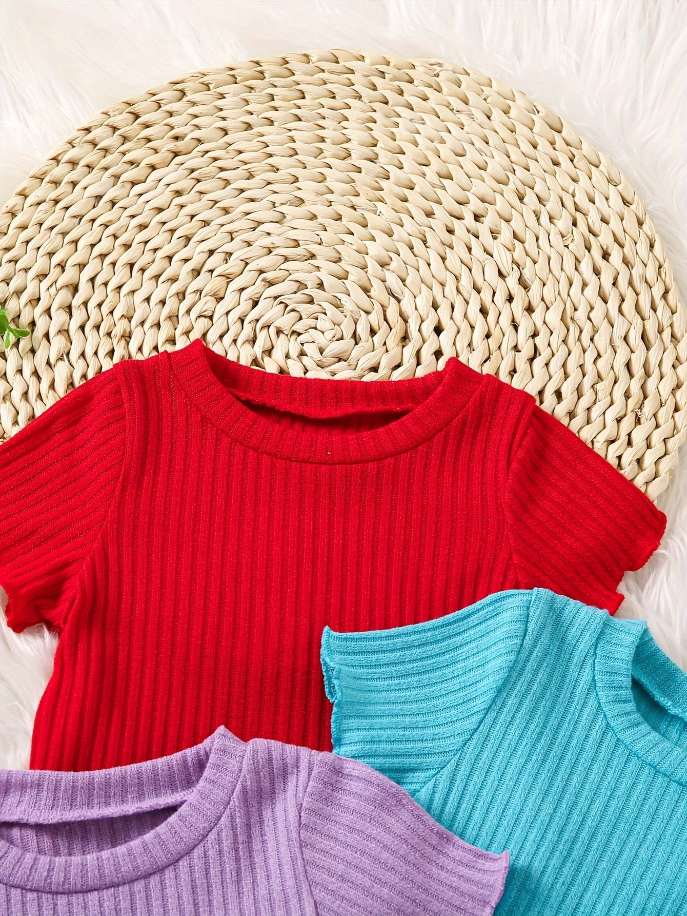 Детские летние футболки с коротким рукавом из рибаны однотонные, упаковка из 4