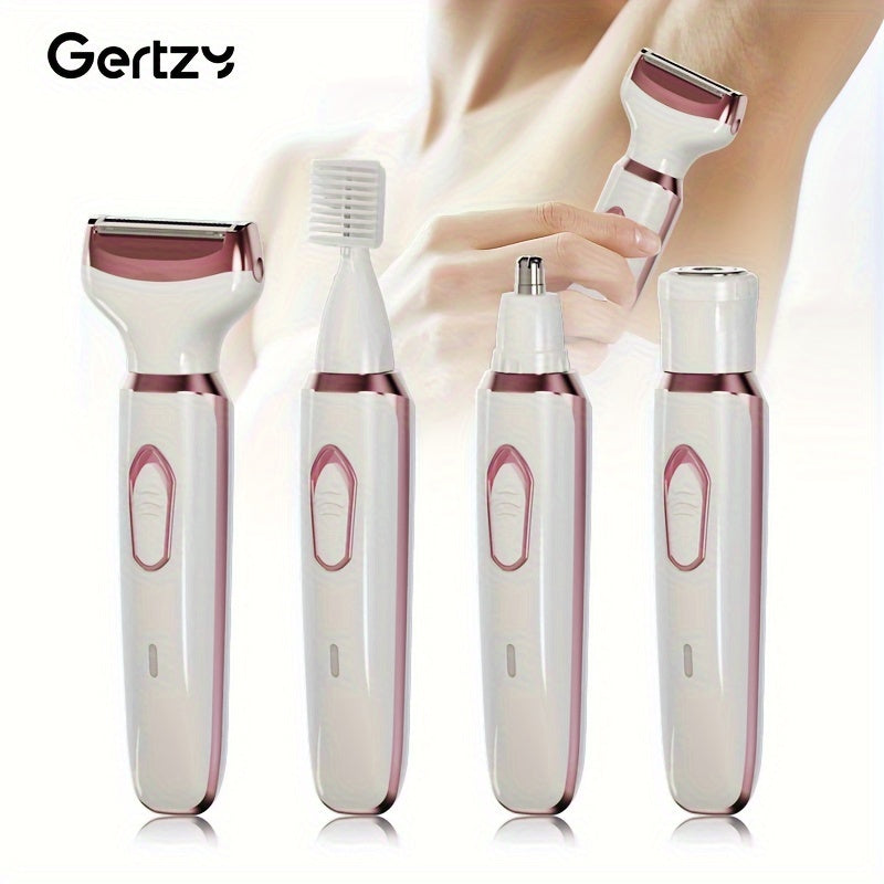 4-в-1 перезаряжаемая электрическая бритва для женщин. Может использоваться для лица, носа, ног, подмышек и стрижки бикини. Влажная и сухая, безболезненная бритвенная система. Портативная и перезаряжаемая.