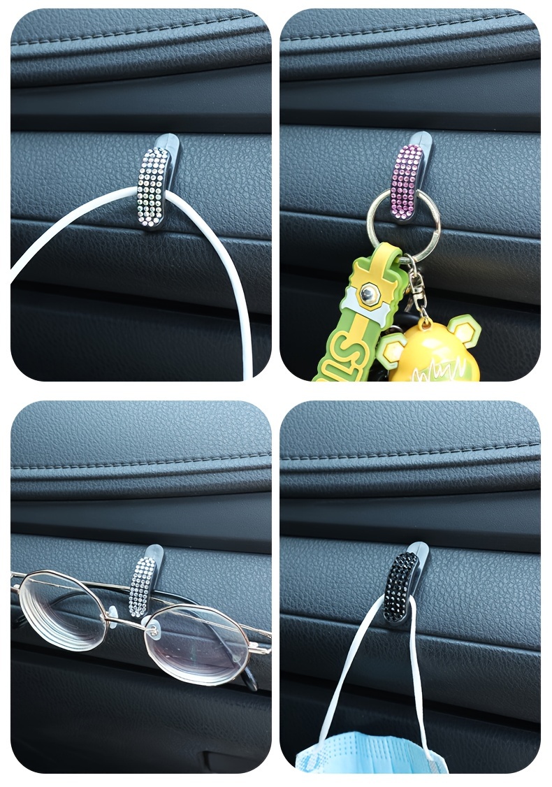 4 шт. блестящих автомобильных крючка с клеевыми стразами для организации ключей, USB-кабелей