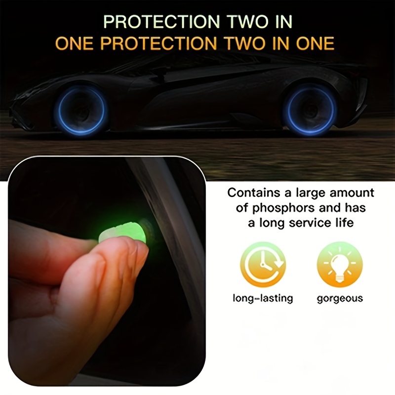 4 шт. светящиеся в темноте крышки для клапанов флуоресцентно-зеленого и синего цвета для автомобилей, велосипедов, мотоциклов