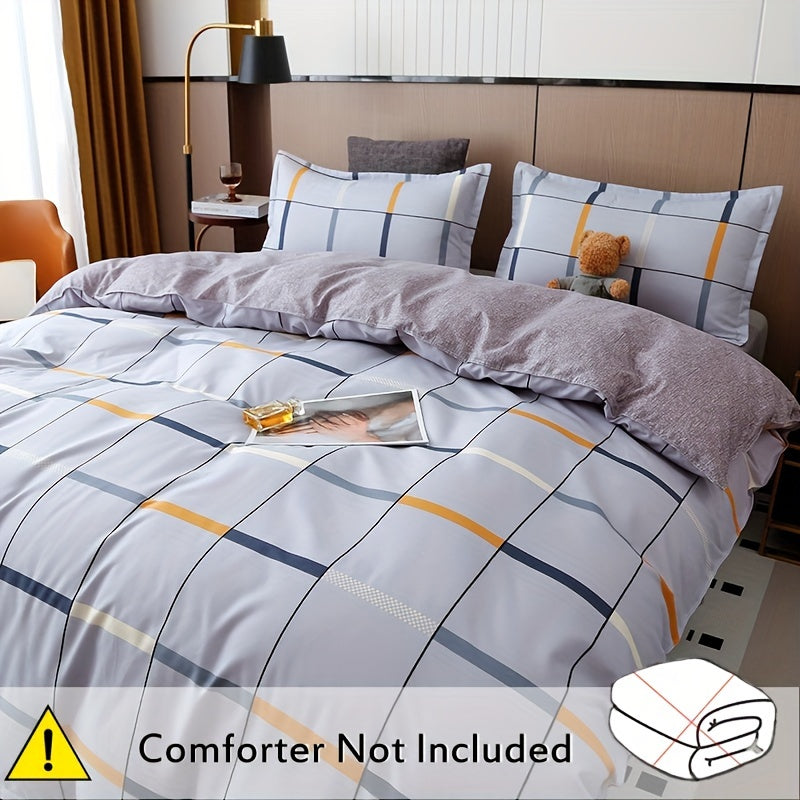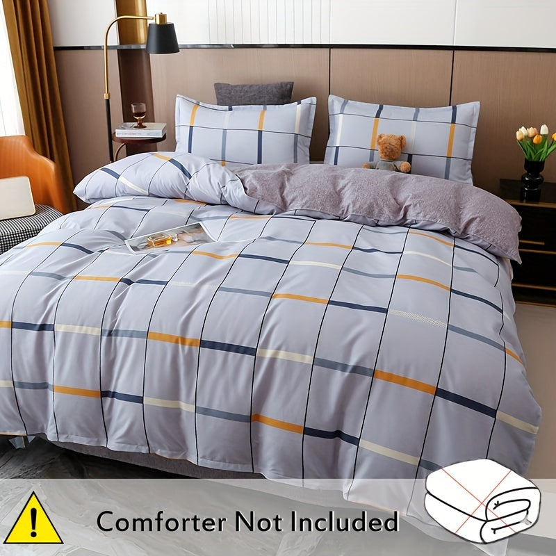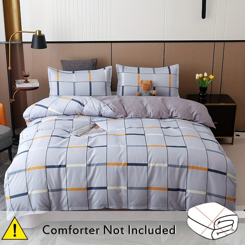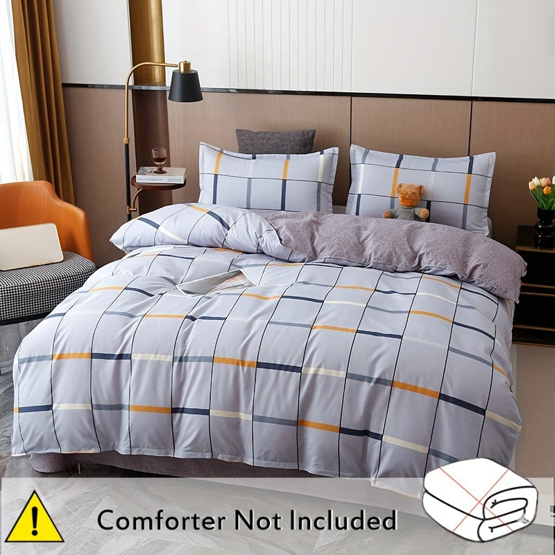Комплект постельного белья из 4 предметов с клетчатым узором, полиэстер, всесезонное покрывало на пуховике, наволочки