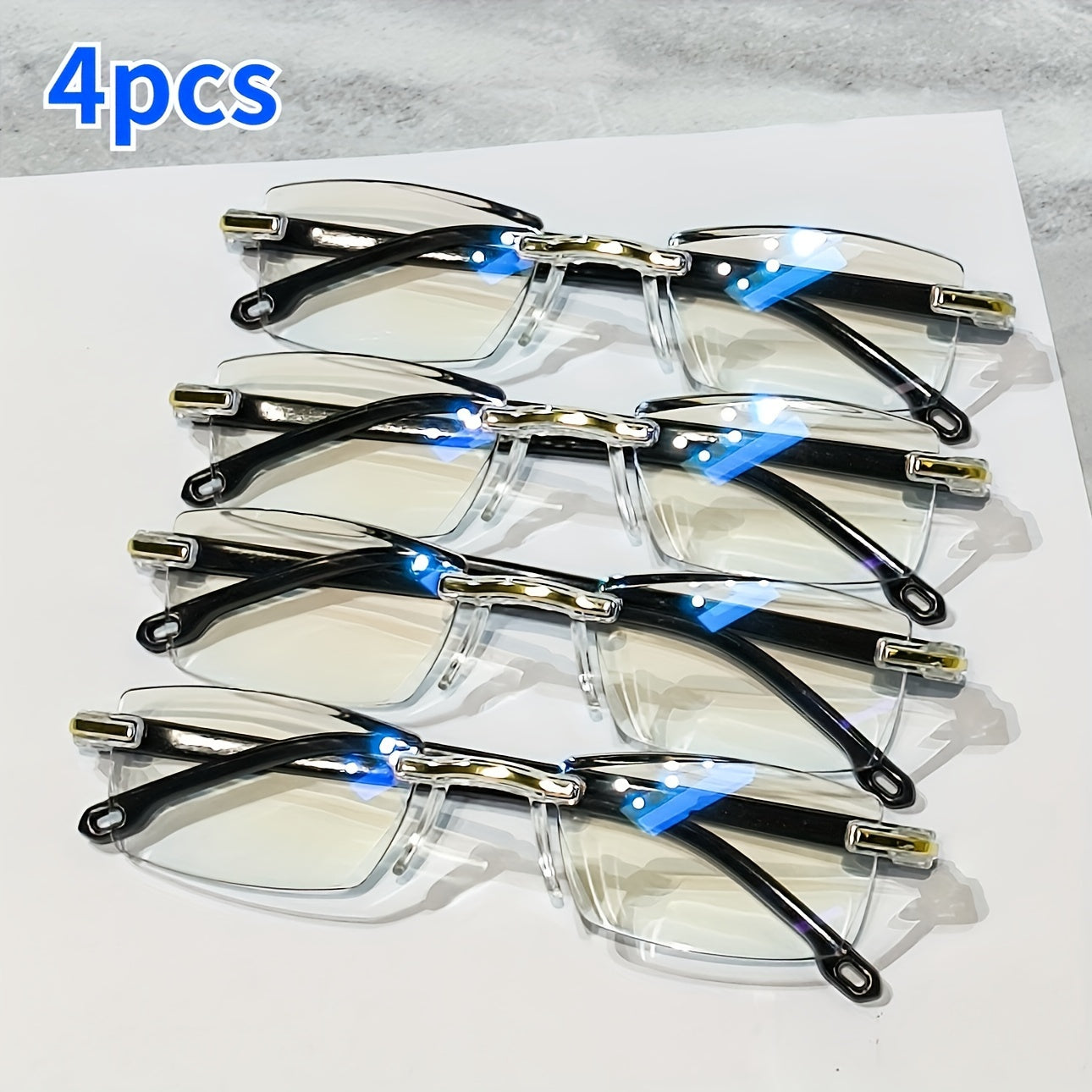 4 Безободковые очки для чтения с защитой от синего света для мужчин и женщин, разработанные для снижения напряжения глаз.