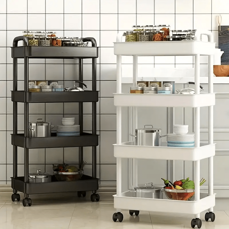 4-уровневая каталка с ящиками - прочный пластик, поворотные колеса - идеальна для хранения на кухне, в ванной, в гостиной и офисе