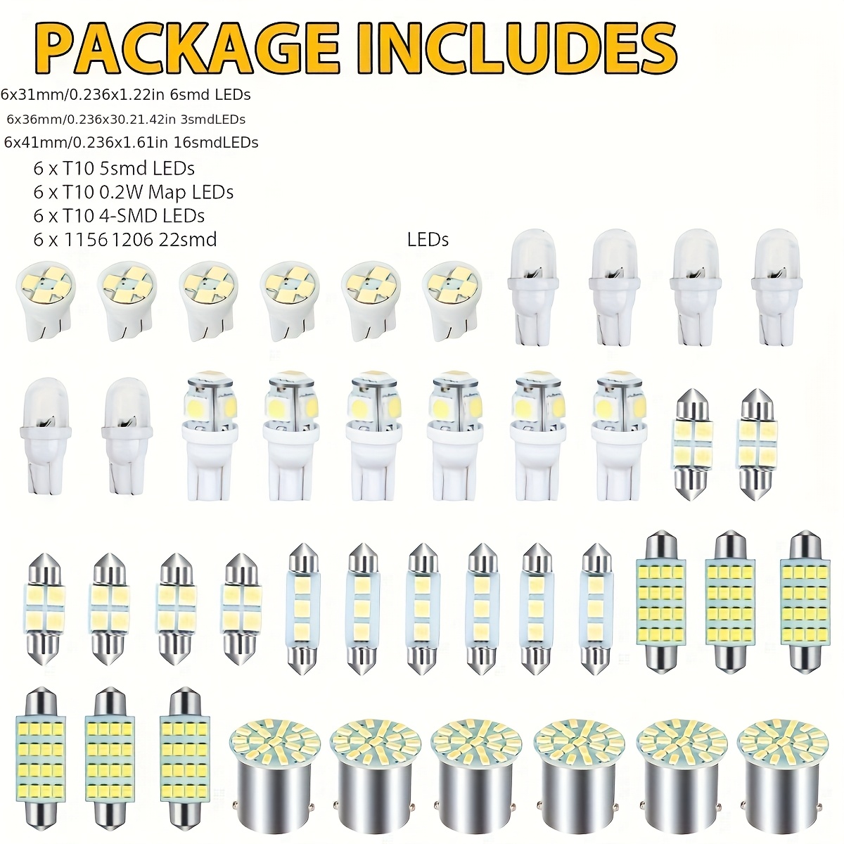 Набор из 42 белых светодиодных ламп для автомобиля 6000K 12V, внутреннее освещение, панель, карта