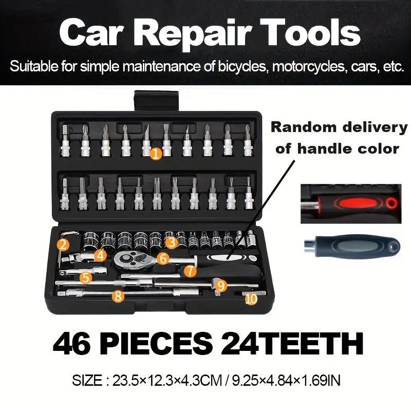 Набор автомобильных ремонтных инструментов из 46 предметов из хром-ванадиевой стали высокой твердости