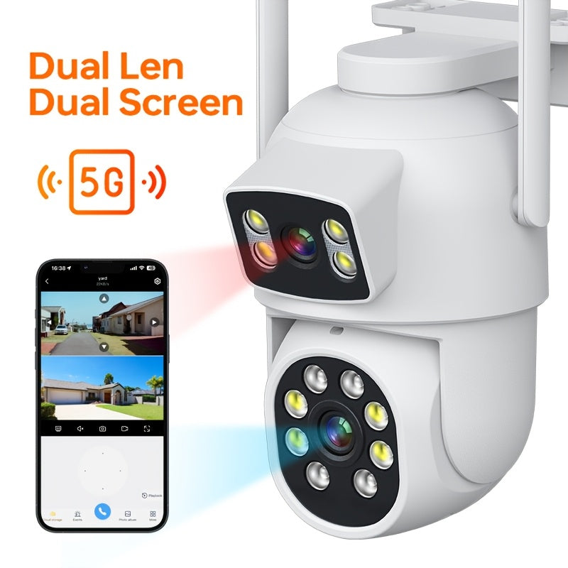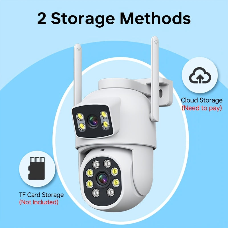 4МП Внешняя Беспроводная Камера Безопасности с Двойной Линзой Панорамная 360 Градусов PTZ Ночное Видение Двусторонний Аудио