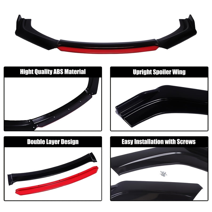 4шт. комплект переднего бампера автомобиля спойлер-сплиттер красный черный PP прочный аэродинамический