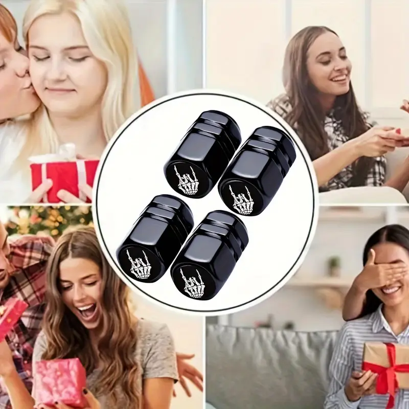 4 шт. крышек для автомобильных вентилей шин - дизайн с отпечатком, универсальный размер, прочный пластик