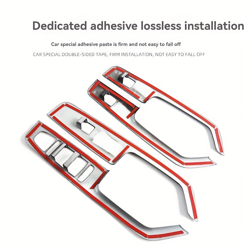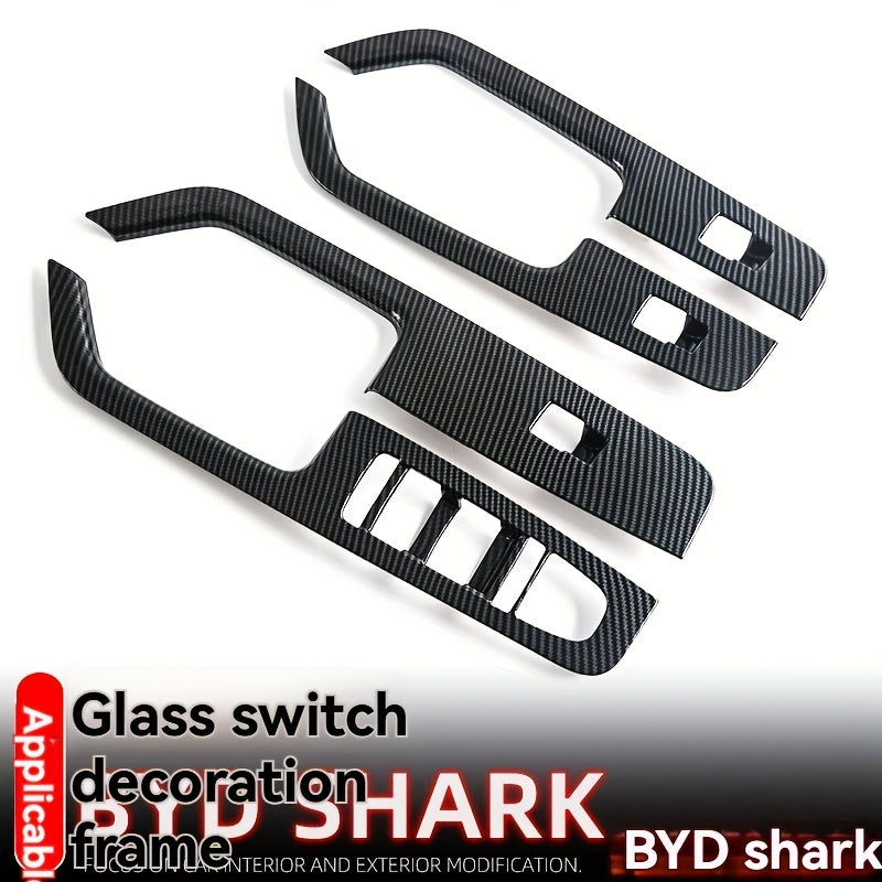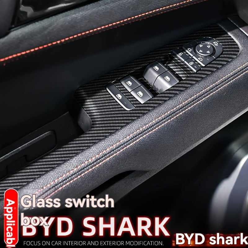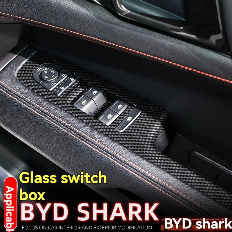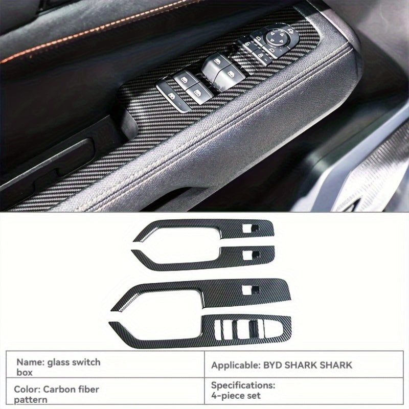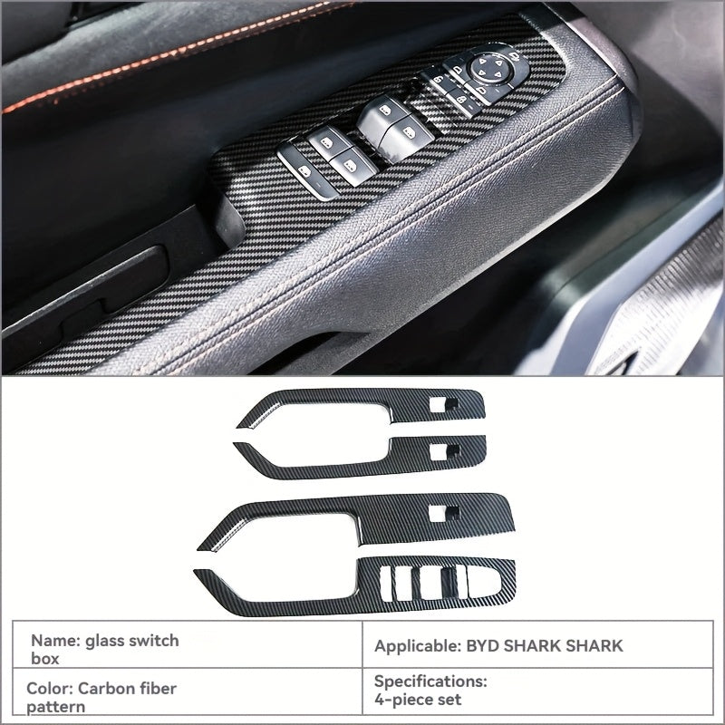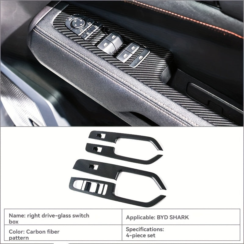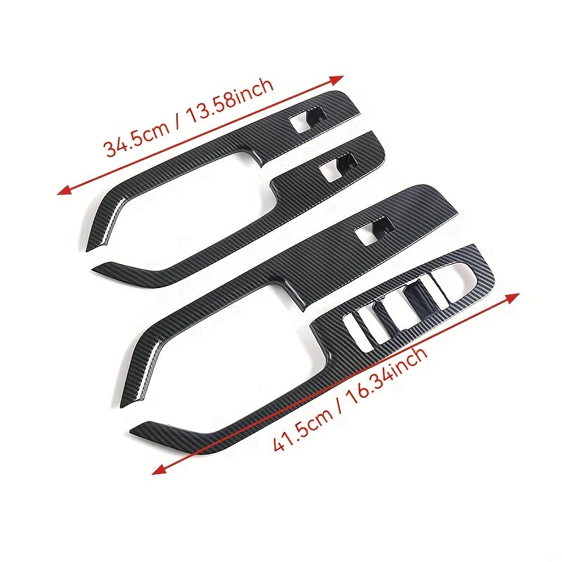Набор из 4 пластиковых панелей с текстурой карбона для ручек дверей и переключателей окон для автомобиля, черный с оранжевыми акцентами