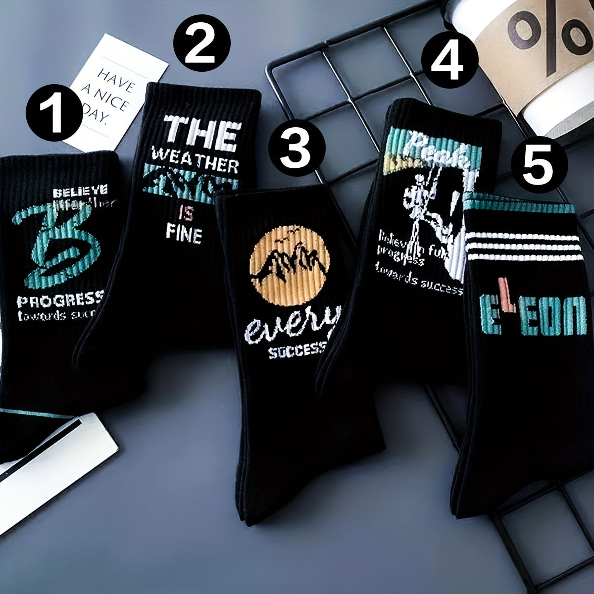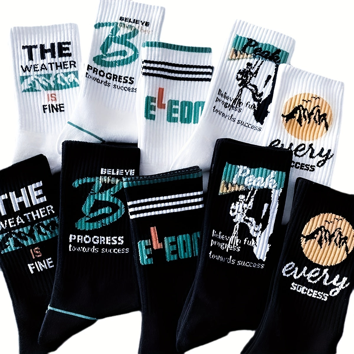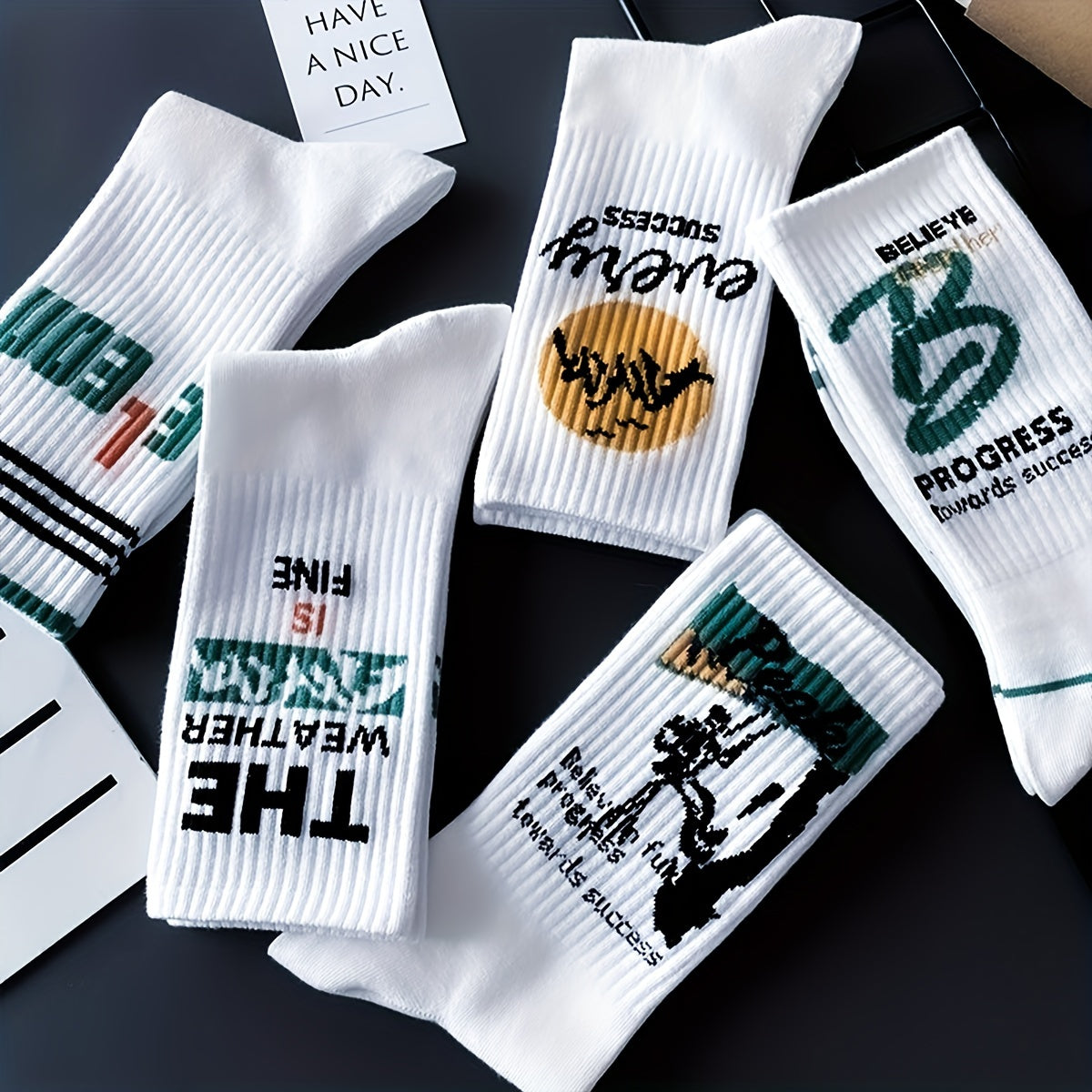 Мужские носки-кастомы 5/10 пар с граффити-буквенным узором, дышащие, повседневные, для улицы
